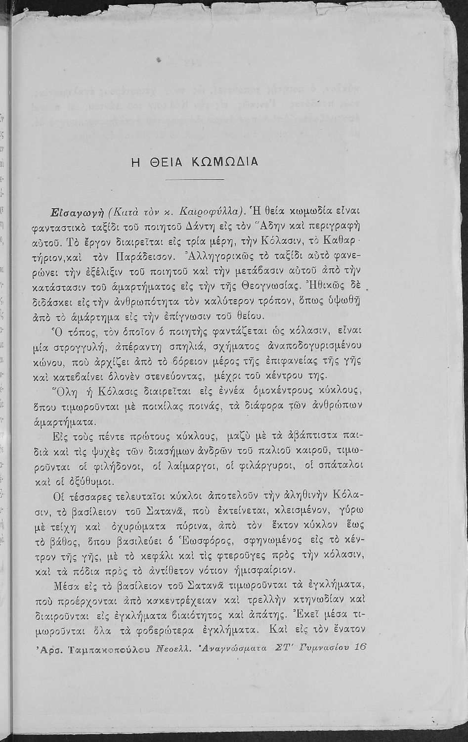 Τάξη:  Γ' Γυμνασίου / Α' Διδασκαλείου Αρρένων / Β' Διδασκαλείων Θηλέων