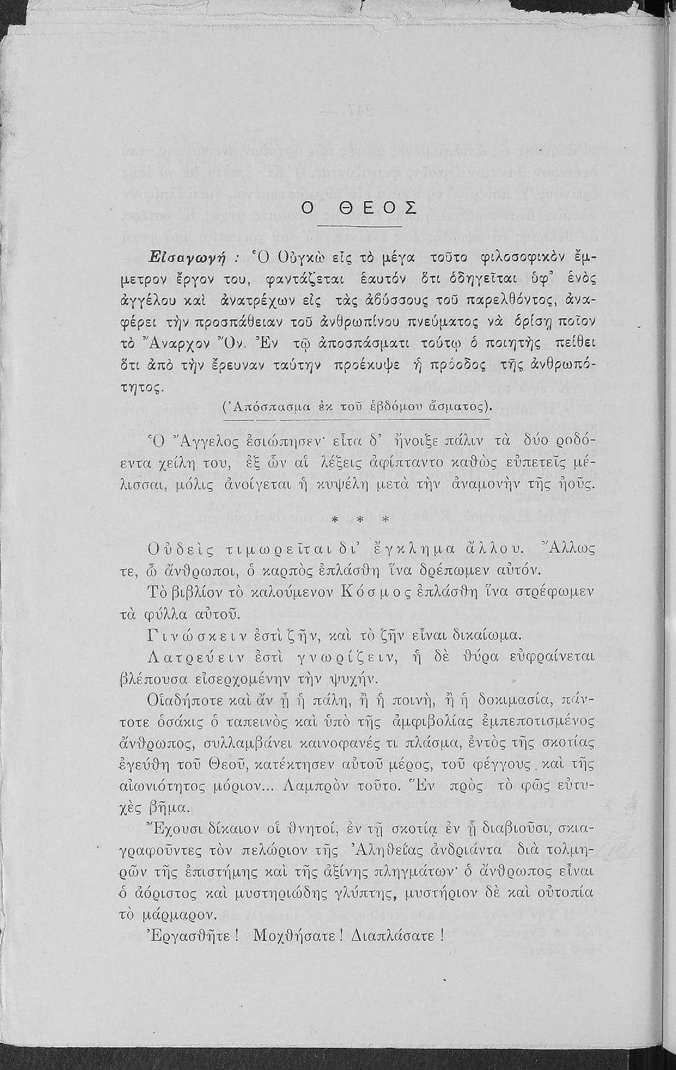 Γλώσσα: Καθαρεύουσα / Δημοτική