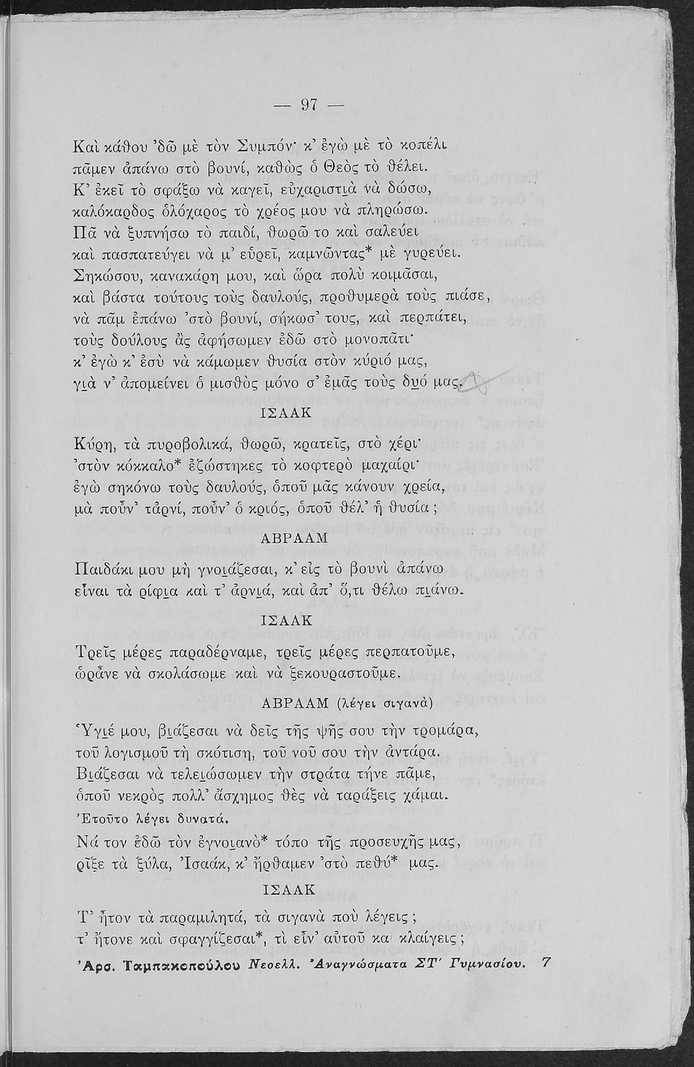 Τάξη:  Γ' Γυμνασίου / Α' Διδασκαλείου Αρρένων / Β' Διδασκαλείων Θηλέων
