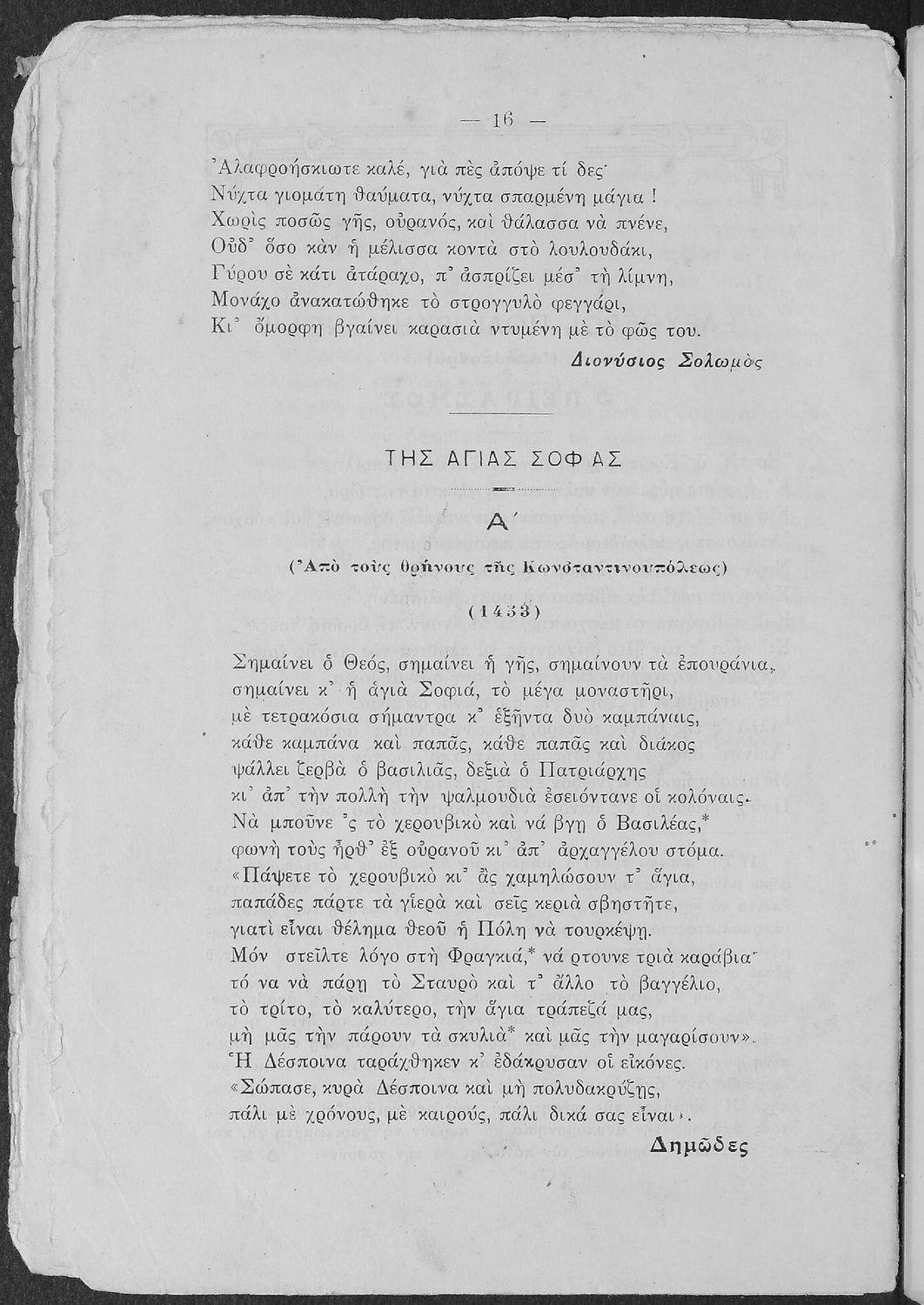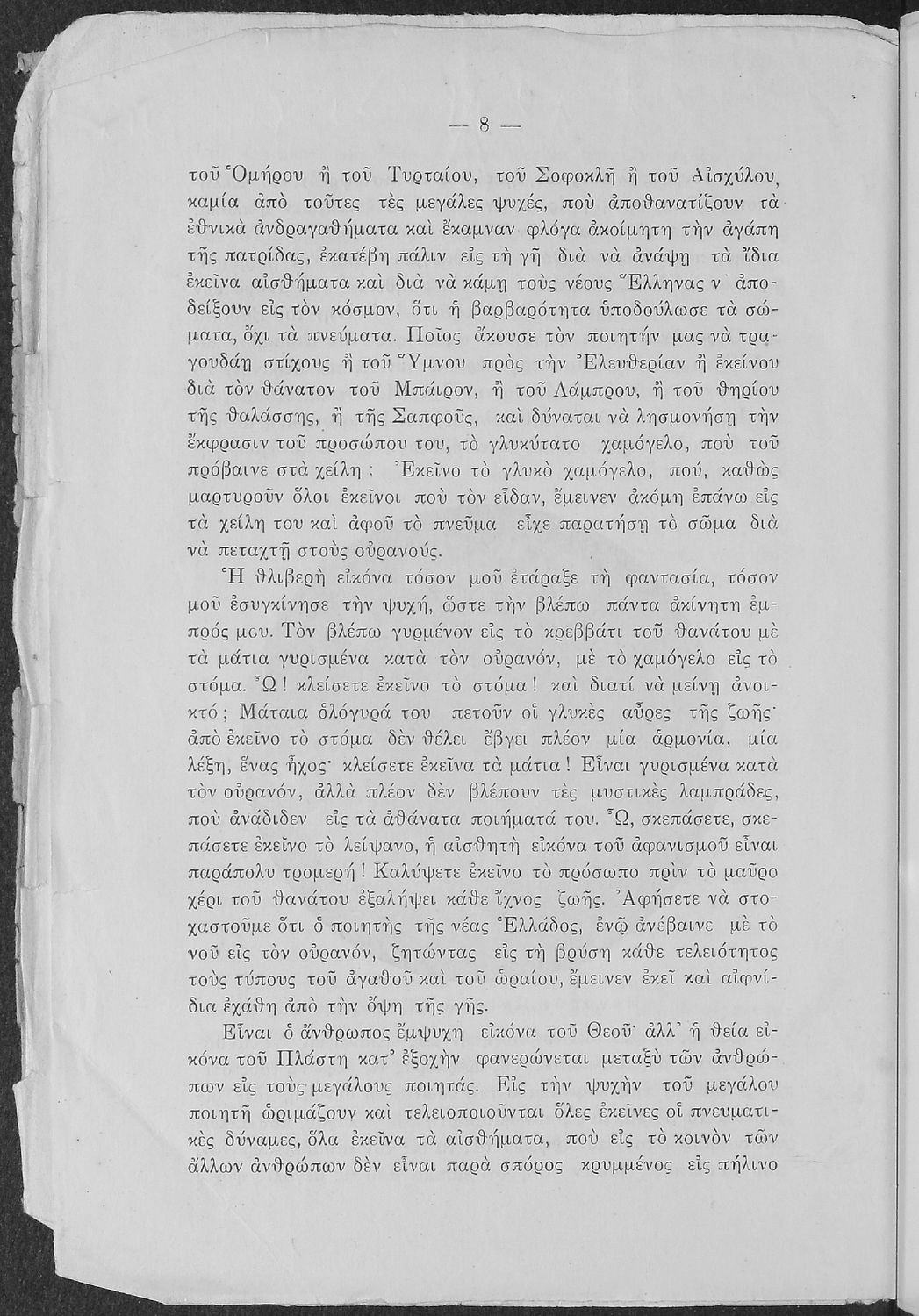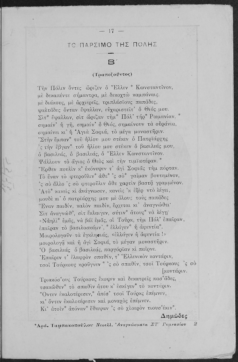Βαθμίδα εκπαίδευσης: Δευτεροβάθμια Τάξη: ΣΤ' Γυμνασίου Μάθημα: Νέα Ελληνικά Γλώσσα: Καθαρεύουσα / Δημοτική Παρουσίαση περιεχομένου: Σχολικό εγχειρίδιο Νέων Ελληνικών ΣΤ΄ Γυμνασίου που περιλαμβάνει ποιήματα και πεζά Ελλήνων συγγραφέων εμπνευσμένα από την οικογενειακή και κοινωνική ζωή, την σύγχρονη ελληνική ιστορία, τη θρησκευτική παράδοση και την ελληνική φύση. Περιέχει αποσπάσματα έργων ξένων συγγραφέων σε μετάφραση και παράρτημα με βιογραφίες των συγγραφέων και λεξιλόγιο. |