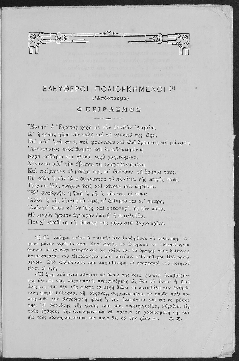 Σχολικό εγχειρίδιο Νέων Ελληνικών ΣΤ΄ Γυμνασίου που περιλαμβάνει ποιήματα και πεζά Ελλήνων συγγραφέων εμπνευσμένα από την οικογενειακή και κοινωνική ζωή, την σύγχρονη ελληνική ιστορία, τη θρησκευτική παράδοση και την ελληνική φύση. Περιέχει αποσπάσματα έργων ξένων συγγραφέων σε μετάφραση και παράρτημα με βιογραφίες των συγγραφέων και λεξιλόγιο.