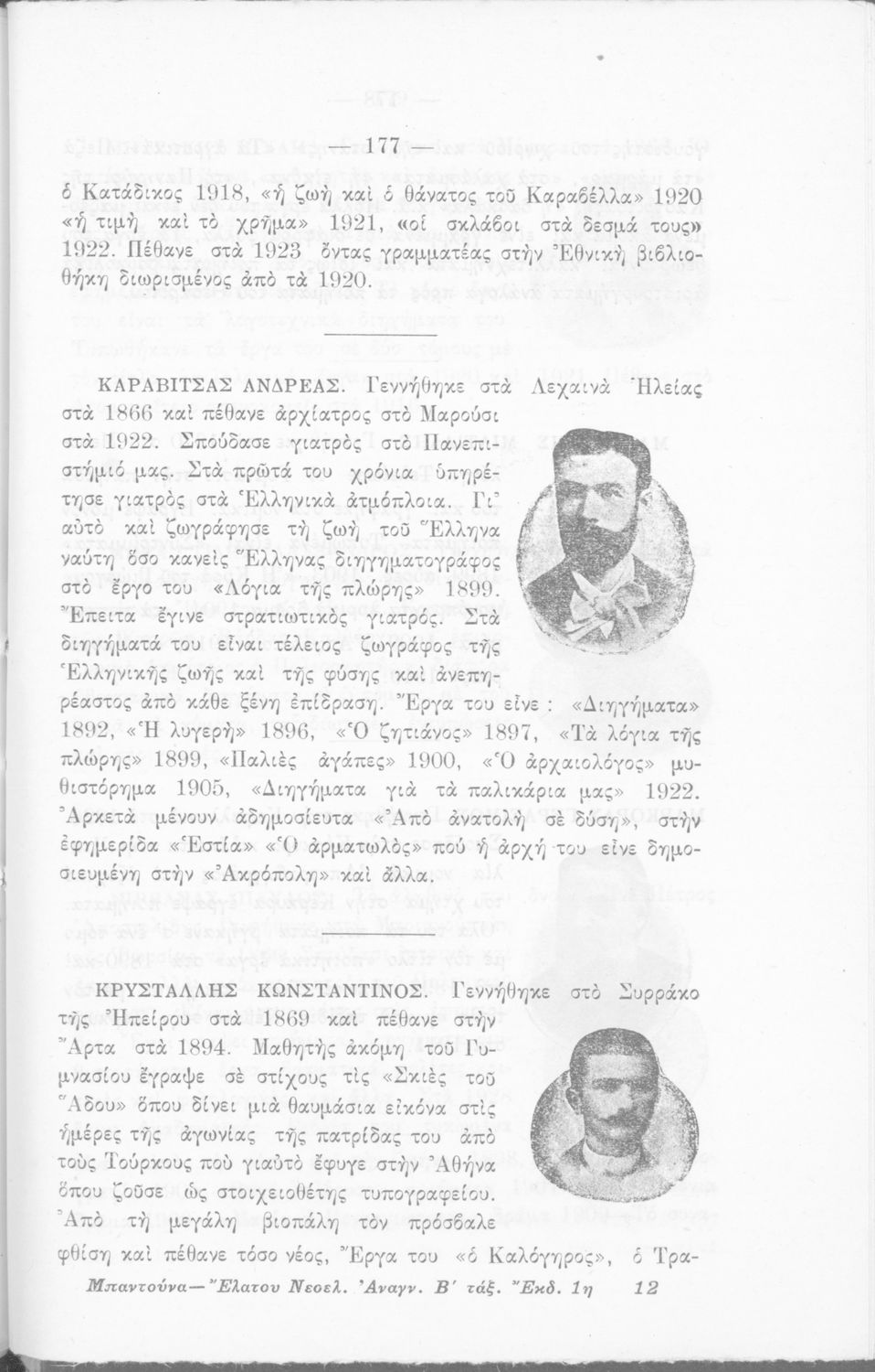 Σχετιζόμενοι όροι:  Παπαντωνίου, Πολέμης, Παλαμάς, Βηλαράς