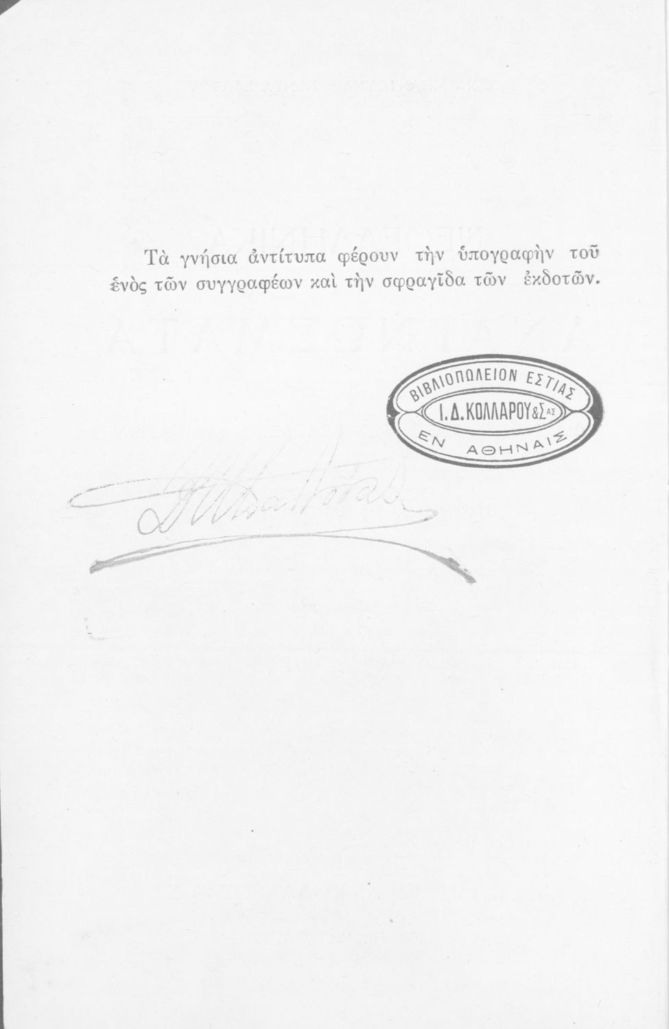 Εκδότης: Ιωάννης Δ. Κολλάρος και ΣΙΑ, Βιβλιοπωλείο της "Εστίας"