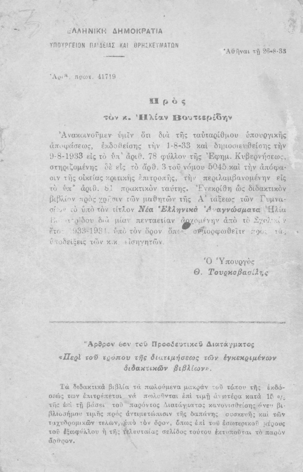 Υπουργική απόφαση / Σύμβαση: 41719/1-8-1933