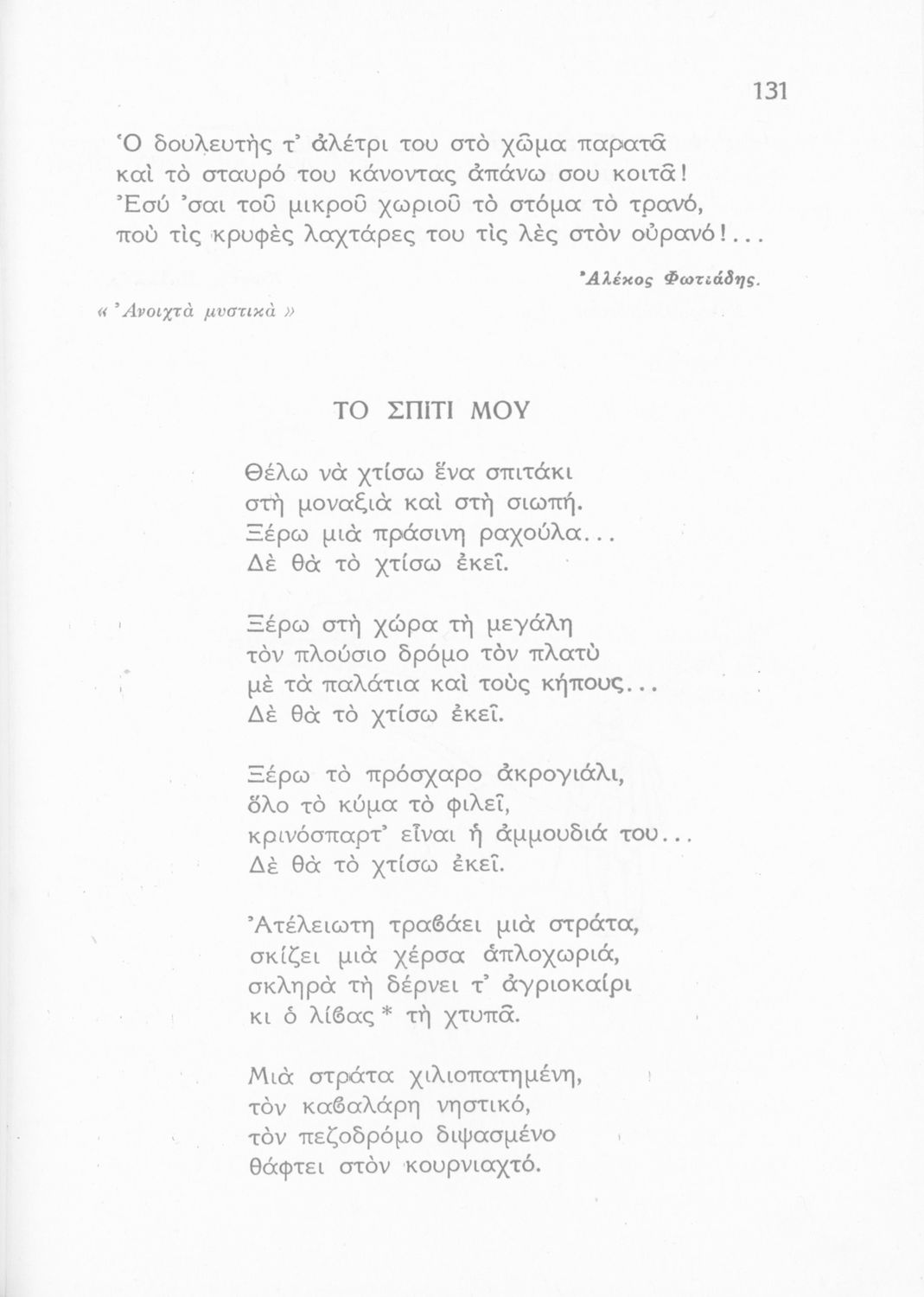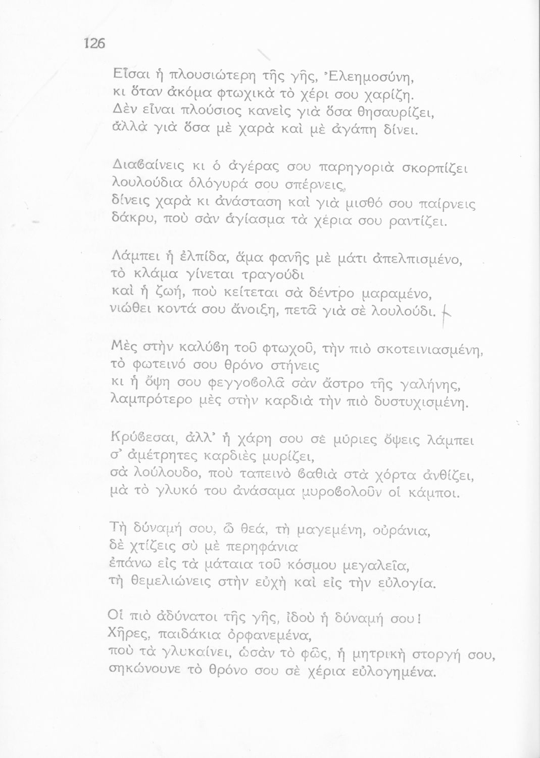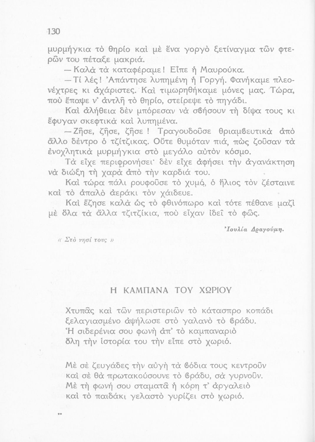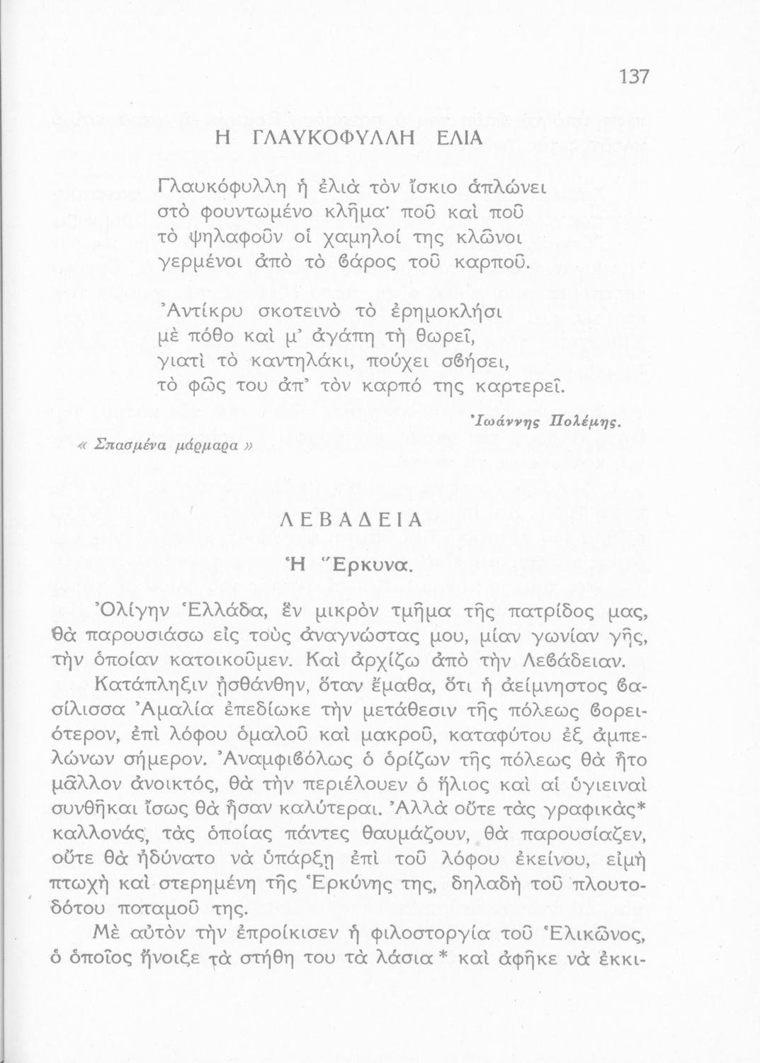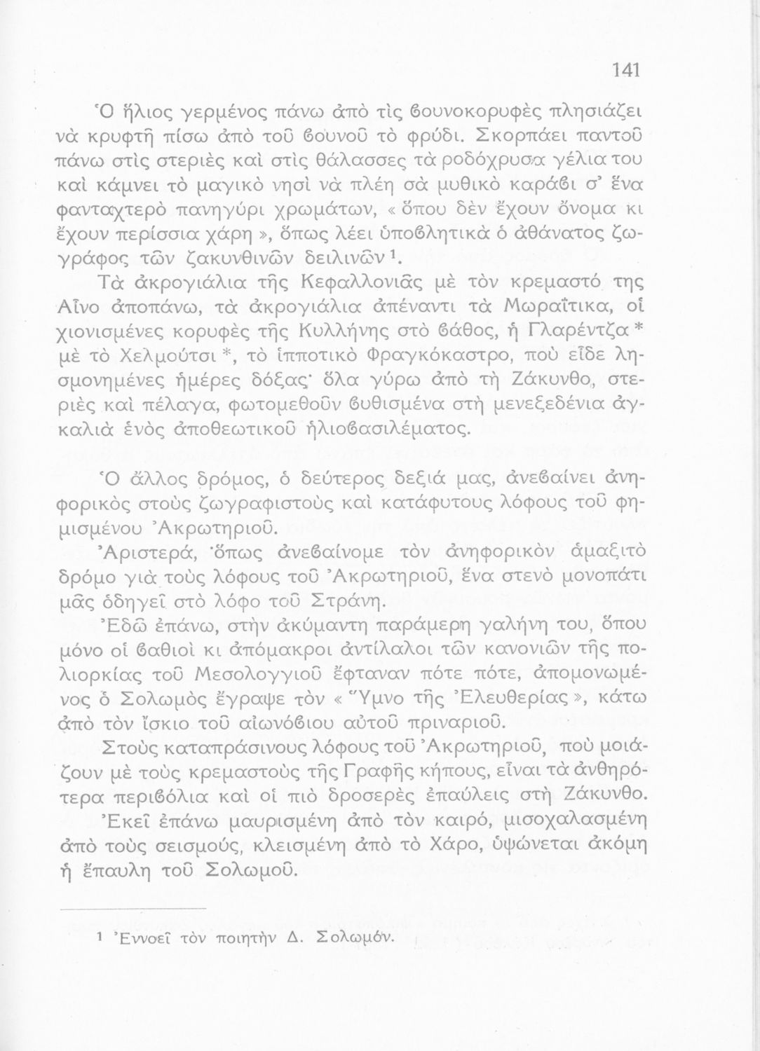 Σχολικό εγχειρίδιο Νέων Ελληνικών Γ΄ Γυμνασίου και Α' Αστικού Σχολείου που περιέχει πεζά και ποιήματα Ελλήνων συγγραφέων εμπνευσμένα από τη θρησκευτική και κοινωνική ζωή, την ελληνική μυθολογία, την αρχαία και σύγχρονη ελληνική ιστορία, και την ελληνική φύση. Περιέχει παράρτημα με βιογραφίες των συγγραφέων και λεξιλόγιο.