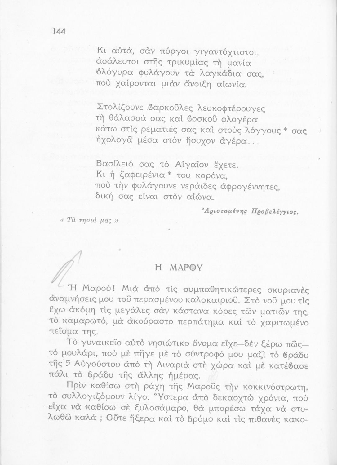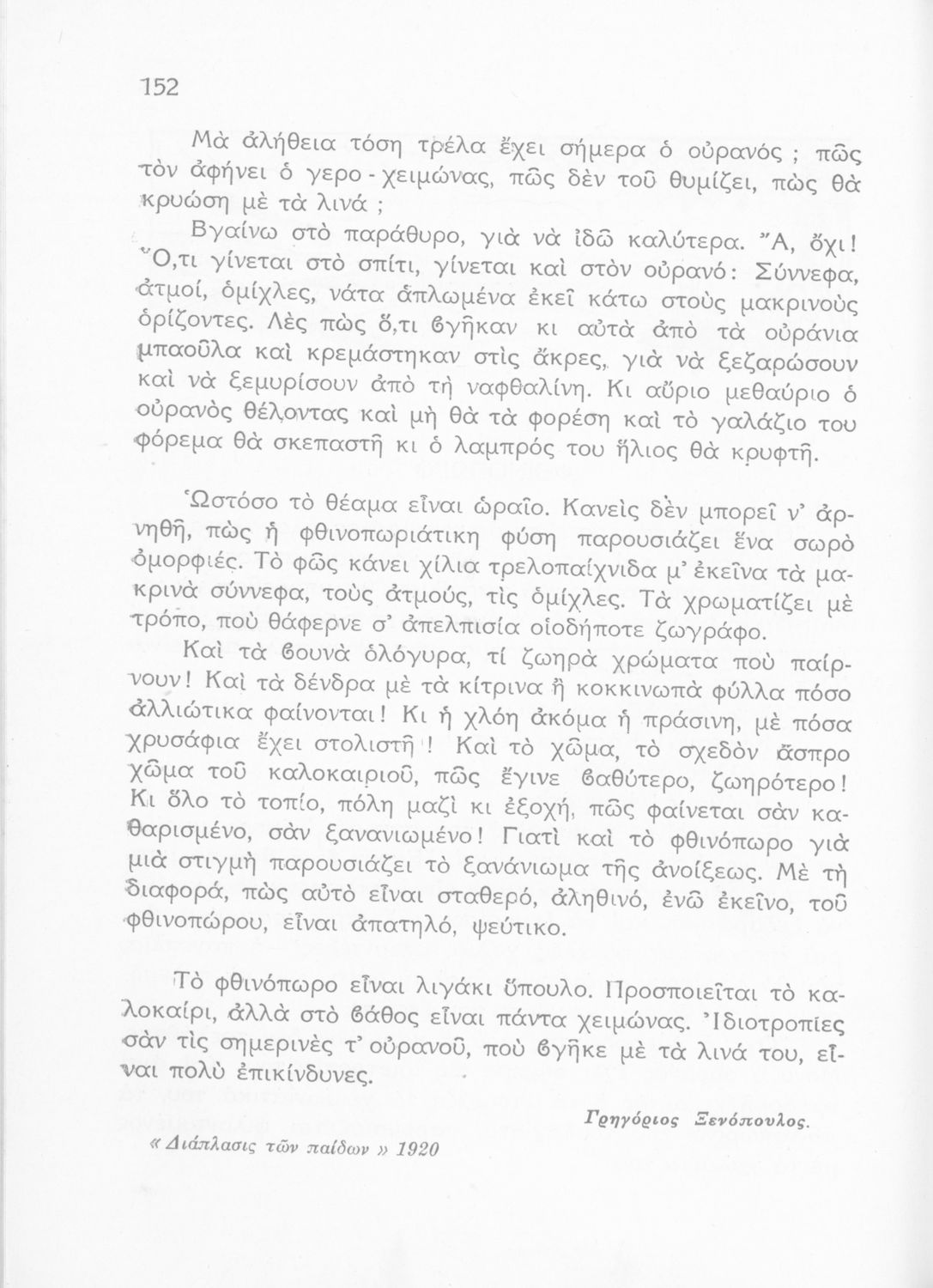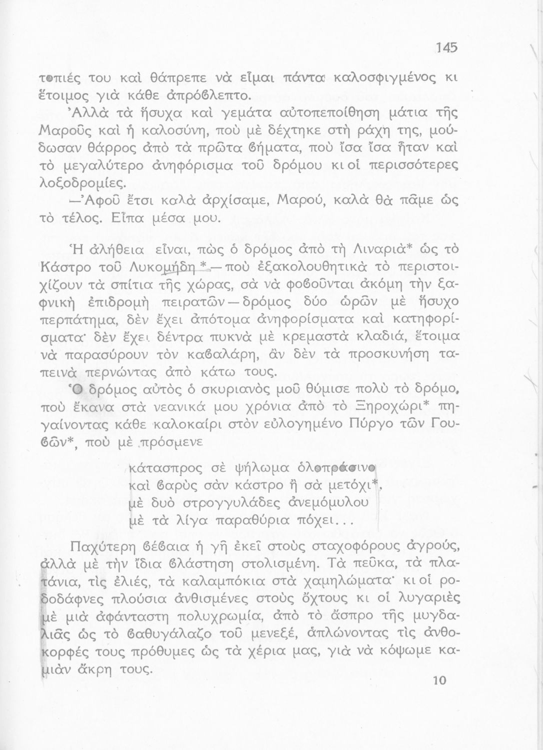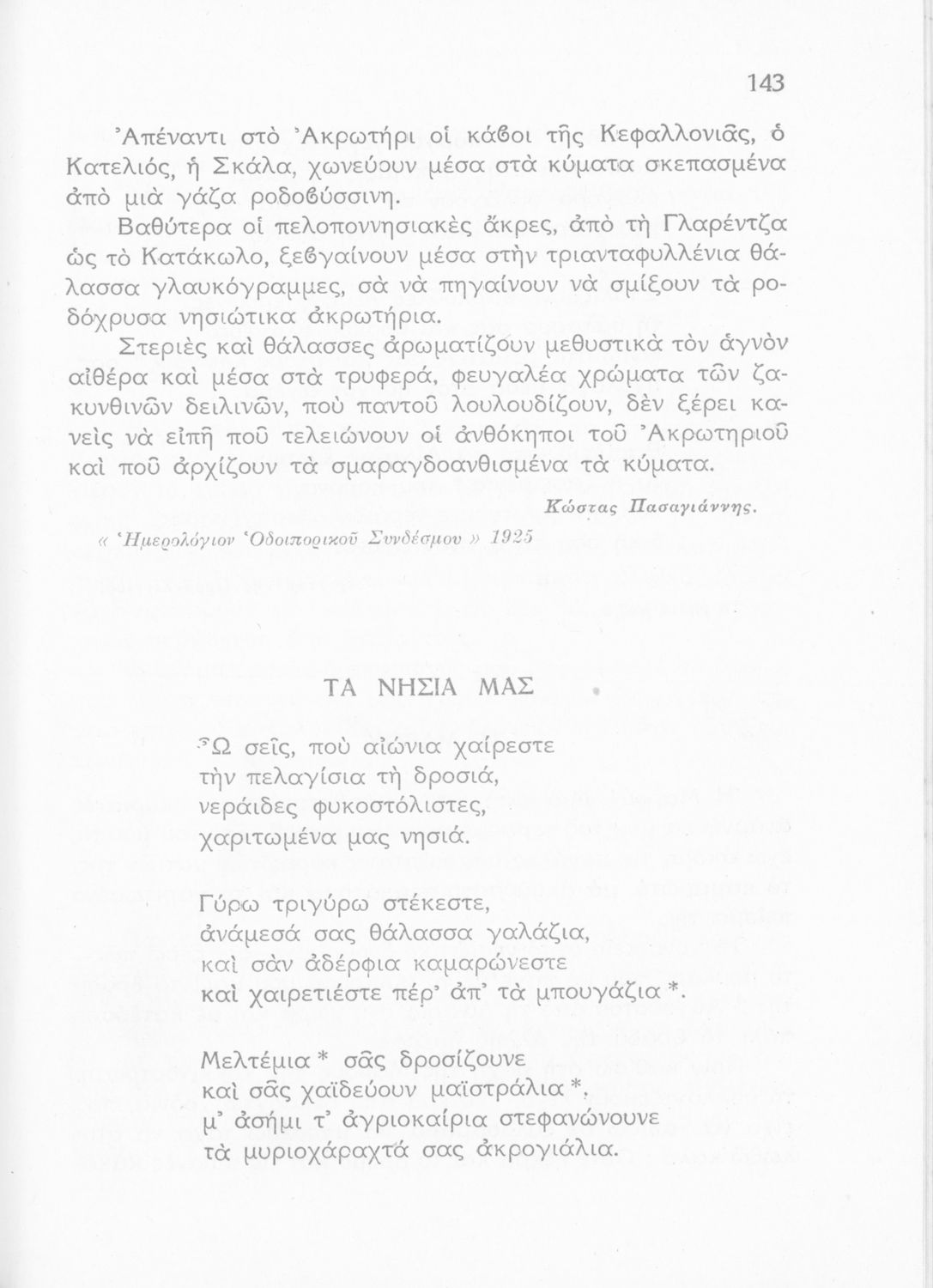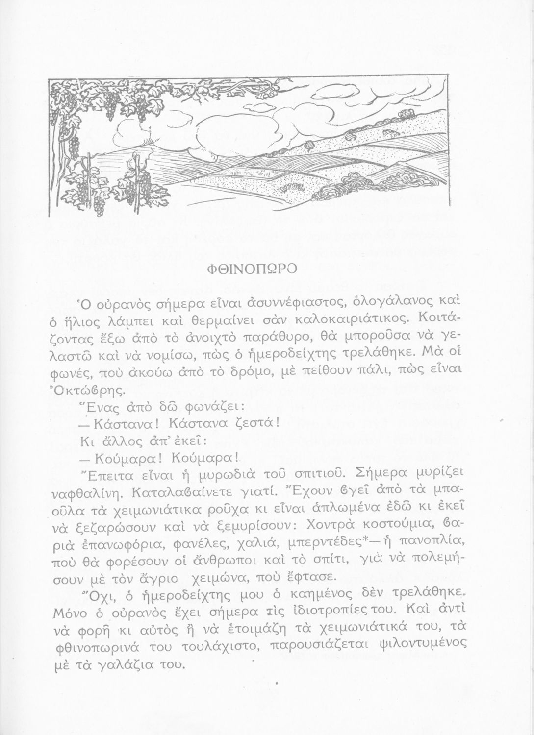 Σχολικό εγχειρίδιο Νέων Ελληνικών Γ΄ Γυμνασίου και Α' Αστικού Σχολείου που περιέχει πεζά και ποιήματα Ελλήνων συγγραφέων εμπνευσμένα από τη θρησκευτική και κοινωνική ζωή, την ελληνική μυθολογία, την αρχαία και σύγχρονη ελληνική ιστορία, και την ελληνική φύση. Περιέχει παράρτημα με βιογραφίες των συγγραφέων και λεξιλόγιο.