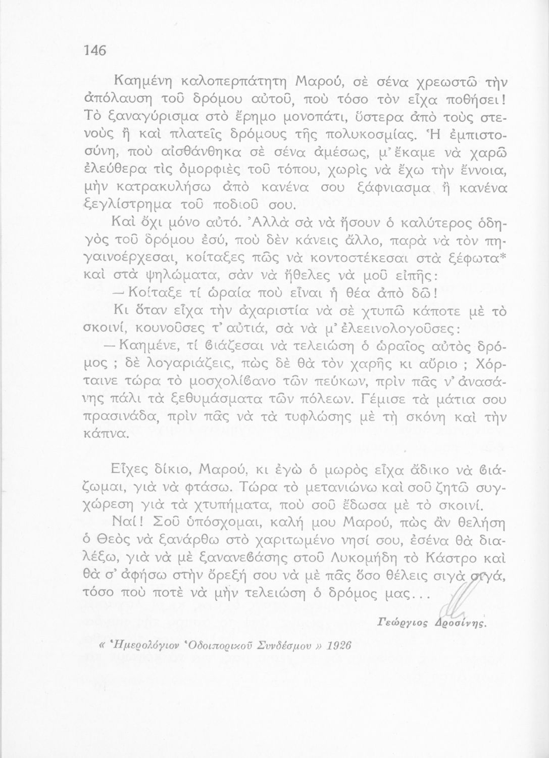 Σχολικό εγχειρίδιο για την Β΄ Γυμνασίου και την Γ΄ Αστικού Θηλέων για το μάθημα των Νέων Ελληνικών. Το εγχειρίδιο αποτελείται από κείμενα πεζού λόγου, επικολυρικά ποιήματα, ωδές, ηθογραφικά διηγήματα, ρητορικά