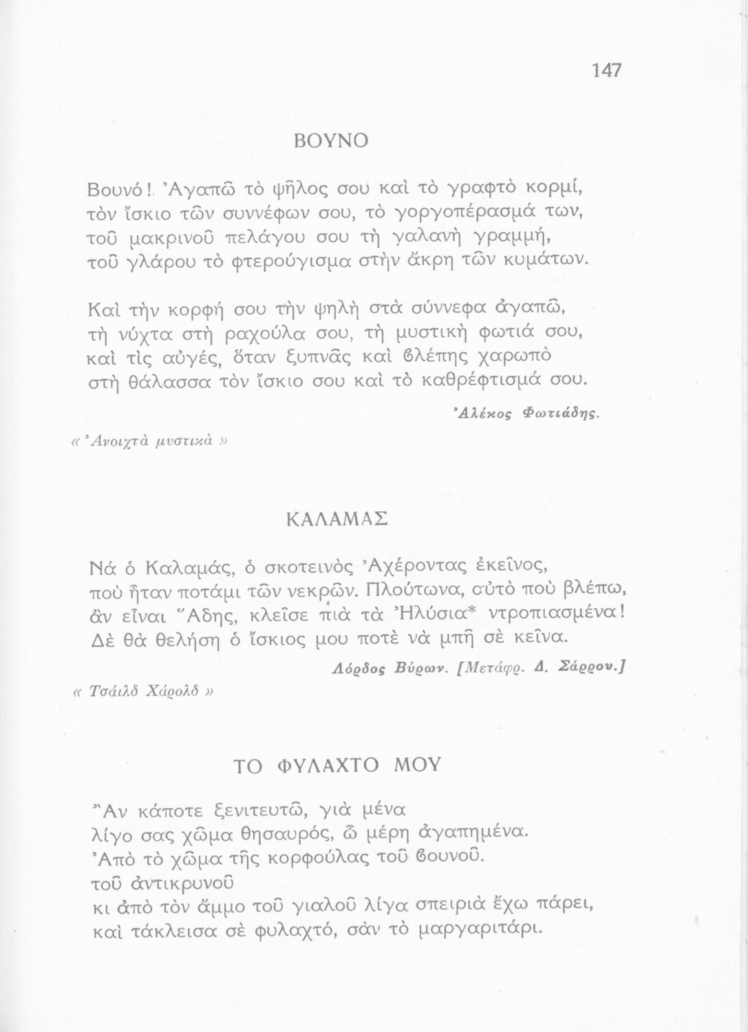 Σχετιζόμενοι όροι:  Λάμπρος, Σολωμός, Κάλβος, Κοραής, Παλαμάς