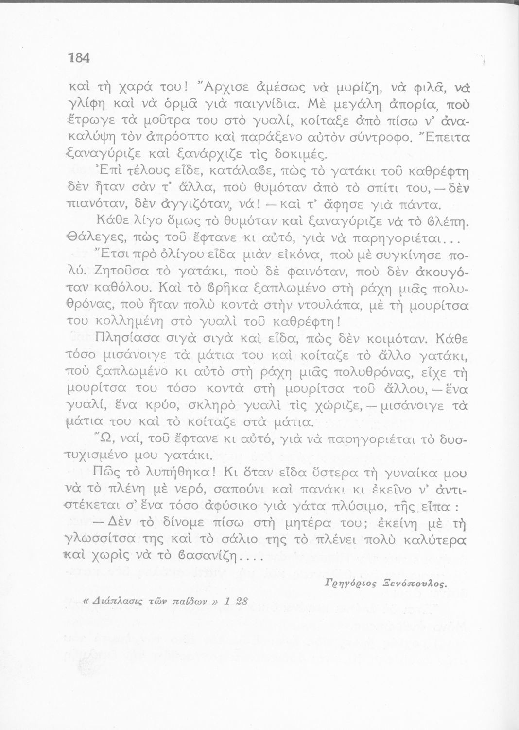 Σχολικό εγχειρίδιο για την Β΄ Γυμνασίου και την Γ΄ Αστικού Θηλέων για το μάθημα των Νέων Ελληνικών. Το εγχειρίδιο αποτελείται από κείμενα πεζού λόγου, επικολυρικά ποιήματα, ωδές, ηθογραφικά διηγήματα, ρητορικά
