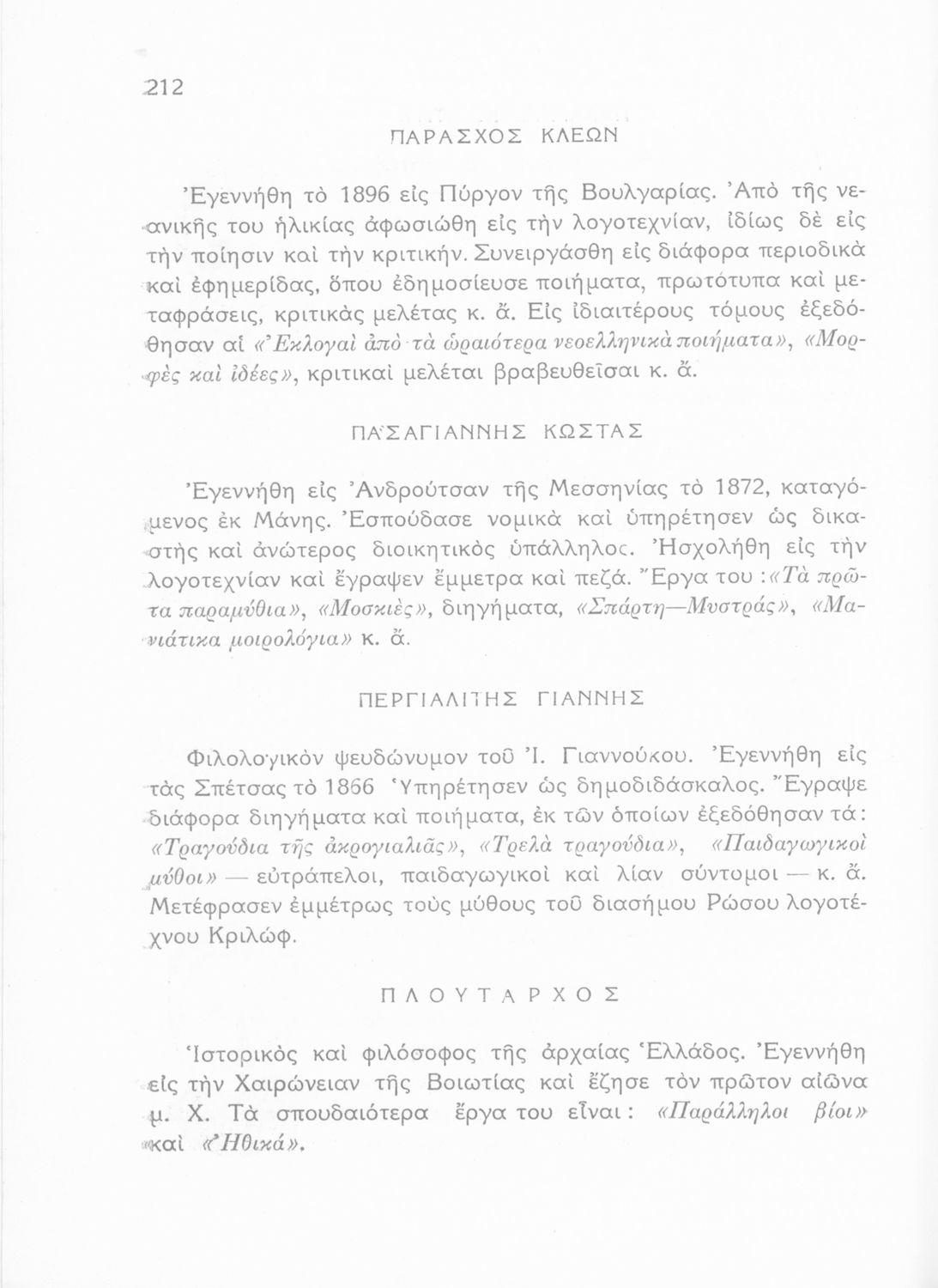 Σχολικό εγχειρίδιο για την Β΄ Γυμνασίου και την Γ΄ Αστικού Θηλέων για το μάθημα των Νέων Ελληνικών. Το εγχειρίδιο αποτελείται από κείμενα πεζού λόγου, επικολυρικά ποιήματα, ωδές, ηθογραφικά διηγήματα, ρητορικά