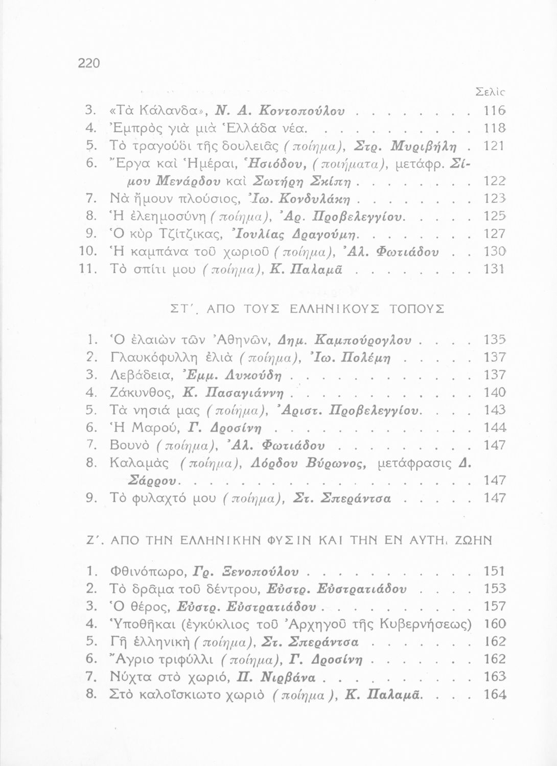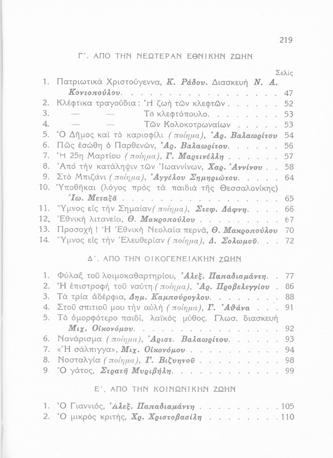 Σχολικό εγχειρίδιο Νέων Ελληνικών Γ΄ Γυμνασίου και Α' Αστικού Σχολείου που περιέχει πεζά και ποιήματα Ελλήνων συγγραφέων εμπνευσμένα από τη θρησκευτική και κοινωνική ζωή, την ελληνική μυθολογία, την αρχαία και σύγχρονη ελληνική ιστορία, και την ελληνική φύση. Περιέχει παράρτημα με βιογραφίες των συγγραφέων και λεξιλόγιο.