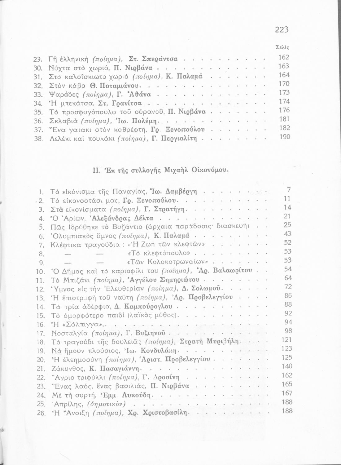 Σχολικό εγχειρίδιο Νέων Ελληνικών Γ΄ Γυμνασίου και Α' Αστικού Σχολείου που περιέχει πεζά και ποιήματα Ελλήνων συγγραφέων εμπνευσμένα από τη θρησκευτική και κοινωνική ζωή, την ελληνική μυθολογία, την αρχαία και