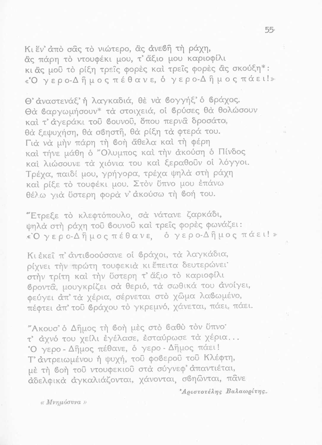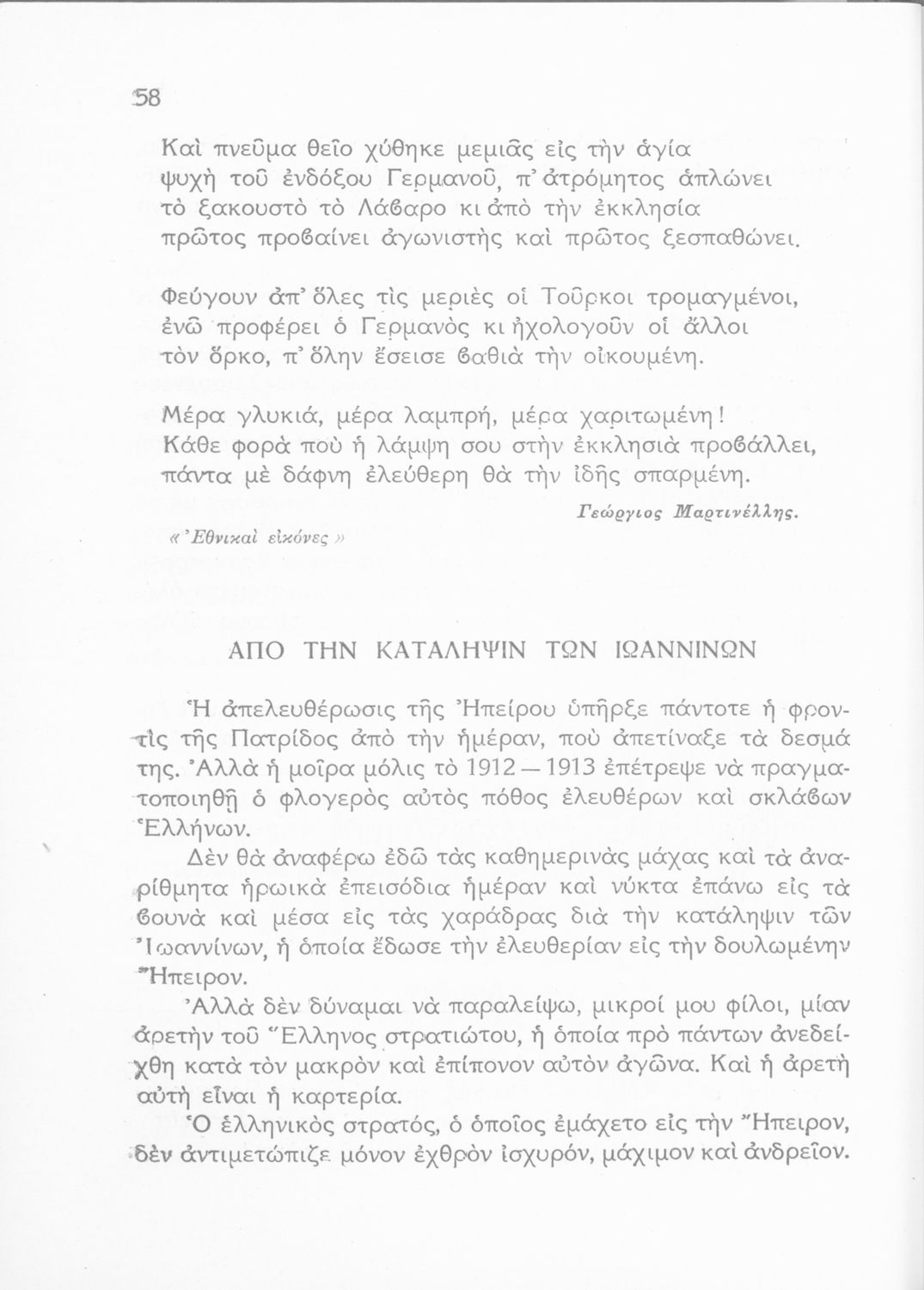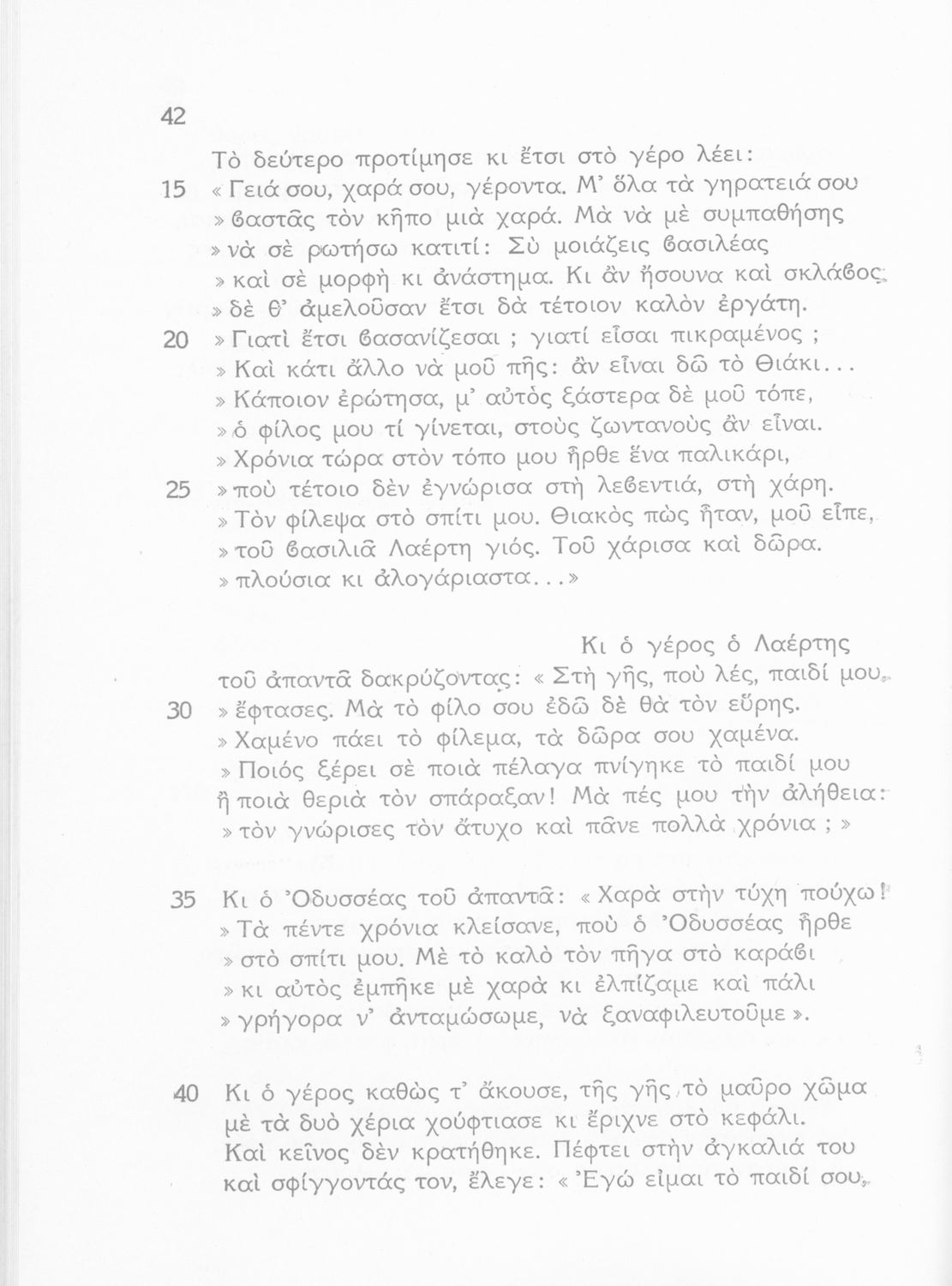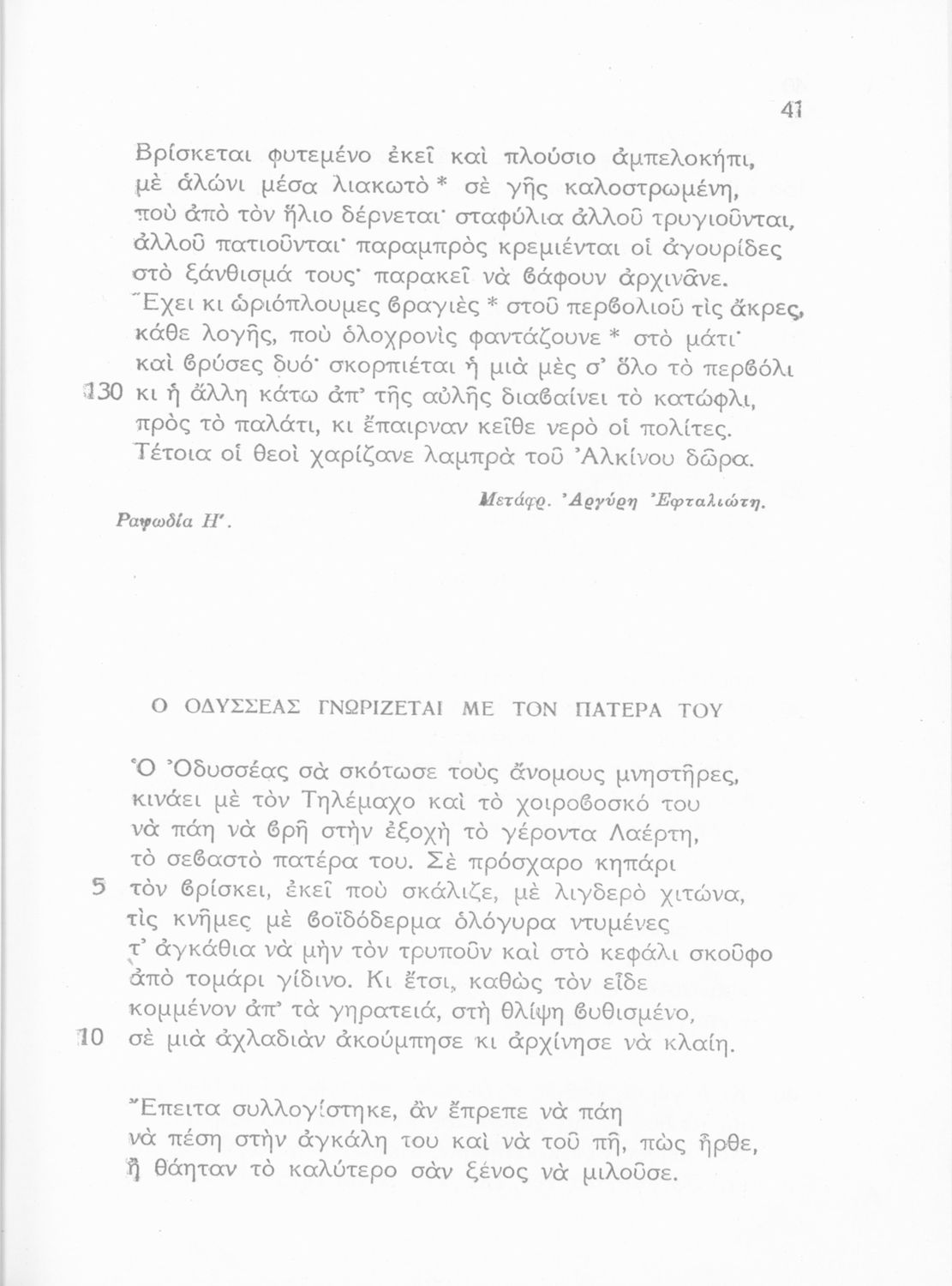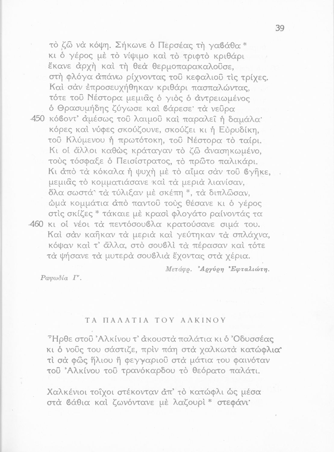 Σχολικό εγχειρίδιο Νέων Ελληνικών Γ΄ Γυμνασίου και Α' Αστικού Σχολείου που περιέχει πεζά και ποιήματα Ελλήνων συγγραφέων εμπνευσμένα από τη θρησκευτική και κοινωνική ζωή, την ελληνική μυθολογία, την αρχαία και σύγχρονη ελληνική ιστορία, και την ελληνική φύση. Περιέχει παράρτημα με βιογραφίες των συγγραφέων και λεξιλόγιο.