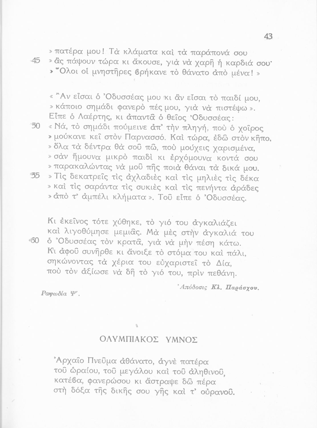 Σχολικό εγχειρίδιο Νέων Ελληνικών Γ΄ Γυμνασίου και Α' Αστικού Σχολείου που περιέχει πεζά και ποιήματα Ελλήνων συγγραφέων εμπνευσμένα από τη θρησκευτική και κοινωνική ζωή, την ελληνική μυθολογία, την αρχαία και