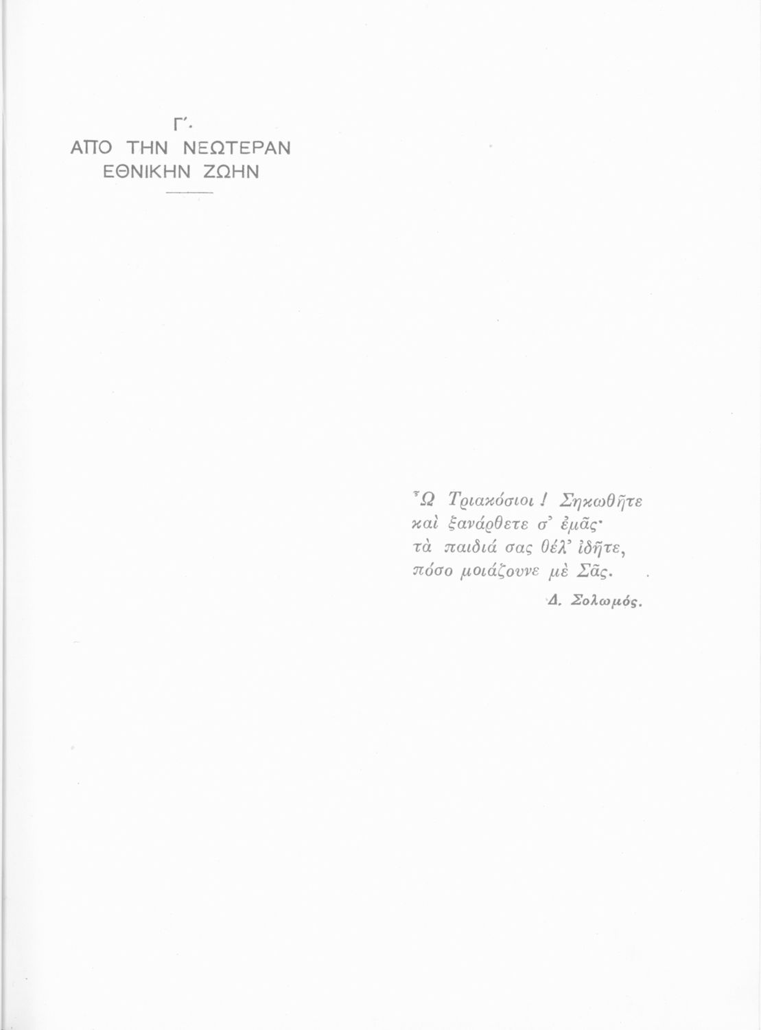 Σχολικό εγχειρίδιο Νέων Ελληνικών Β΄ Τετραταξίου Γυμνασίου και Γ΄ Αστικού Σχολείου Θηλέων που περιλαμβάνει ποιήματα και πεζά Ελλήνων συγγραφέων εμπνευσμένα από την σύγχρονη ελληνική ιστορία. Περιέχει και ...