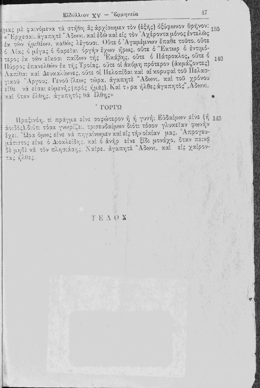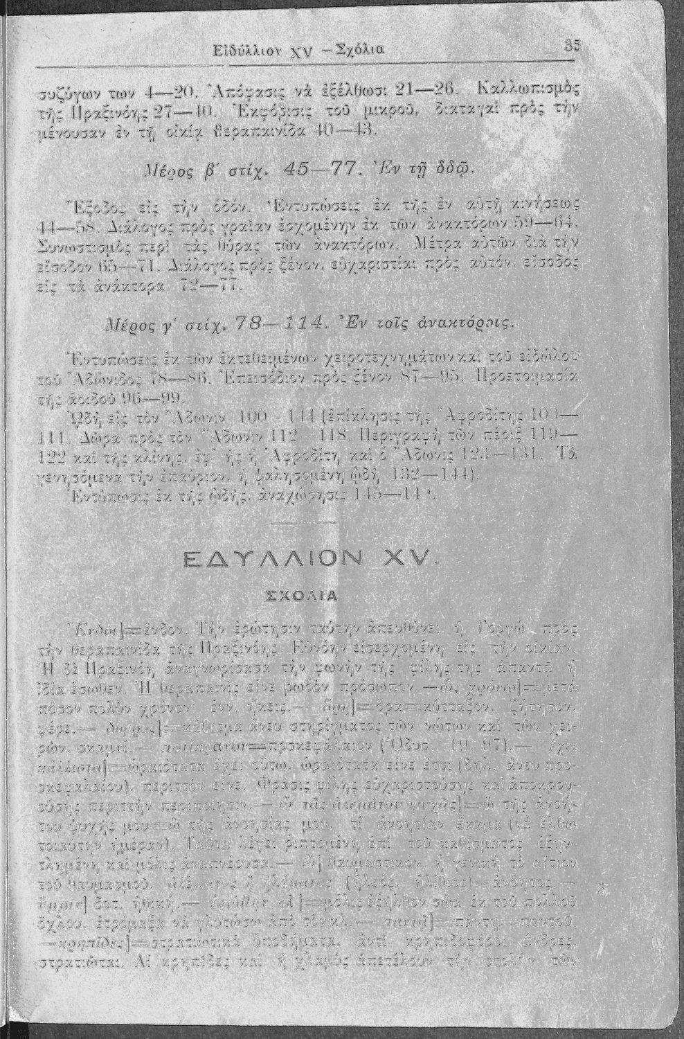 Σχετιζόμενοι όροι:  Θεόκριτος, Ειδύλλια Α΄ -Γ-ΙΑ΄ -ΙΕ΄