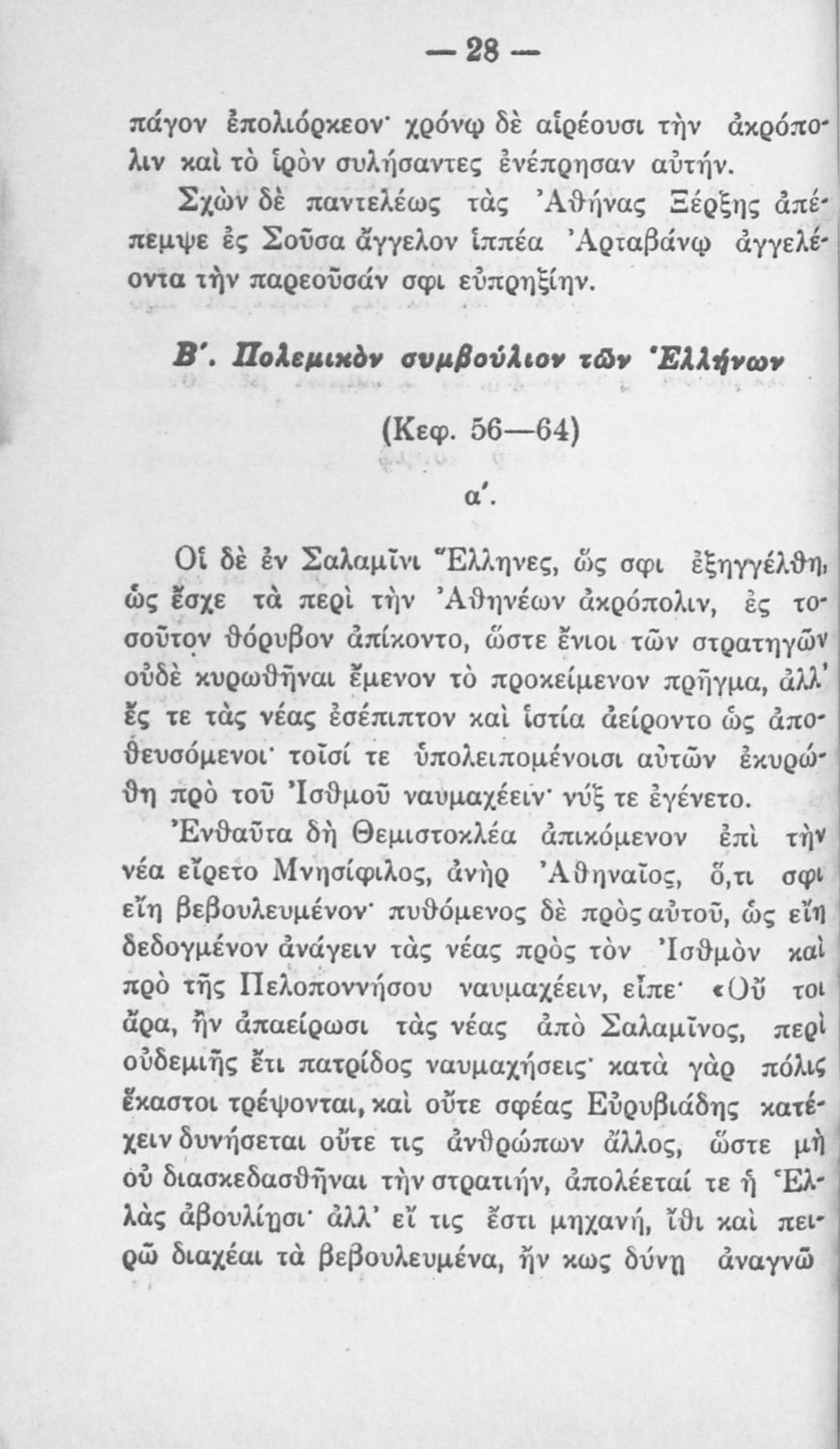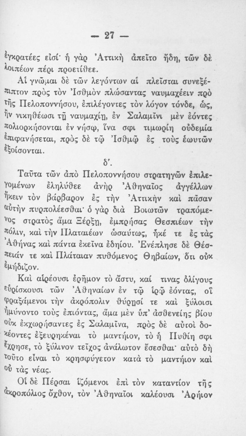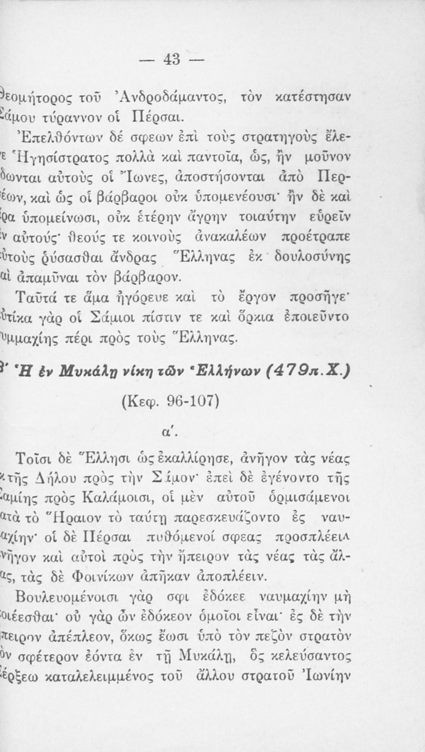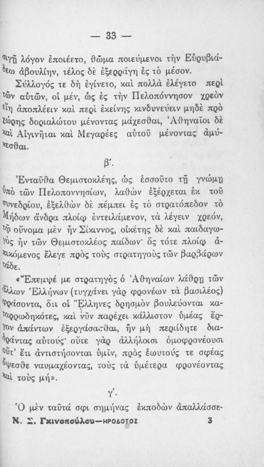 Βαθμίδα εκπαίδευσης: Δευτεροβάθμια Τάξη: Α' Γυμνασίου Μάθημα: Αρχαία Ελληνικά Γλώσσα: Καθαρεύουσα Παρουσίαση περιεχομένου: Σχολικό εγχειρίδιο Αρχαίων Ελληνικών Α΄ Γυμνασίου που περιλαμβάνει αποσπάσματα από το έργο του Ηρόδοτου Ιστορία και τους Λόγους του Λυσία Υπέρ Μαντιθέου και Κατά των σιτοπολών. |
