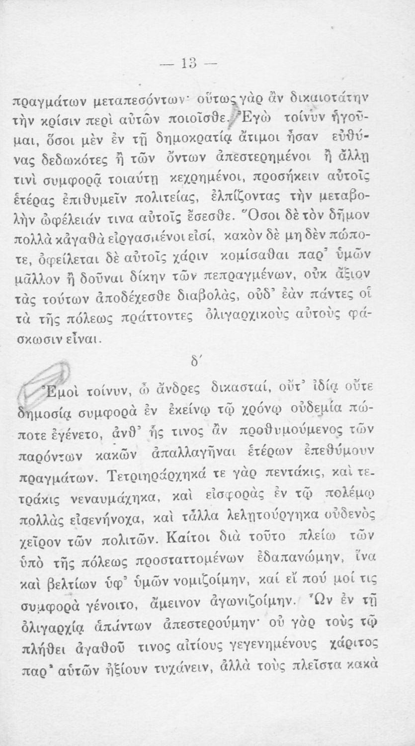 Βαθμίδα εκπαίδευσης: Δευτεροβάθμια Τάξη: Α' Γυμνασίου Μάθημα: Αρχαία Ελληνικά Γλώσσα: Καθαρεύουσα Παρουσίαση περιεχομένου: Σχολικό εγχειρίδιο Αρχαίων Ελληνικών Α΄ Γυμνασίου που περιλαμβάνει αποσπάσματα από το έργο του Ηρόδοτου Ιστορία και τους Λόγους του Λυσία Υπέρ Μαντιθέου και Κατά των σιτοπολών. |