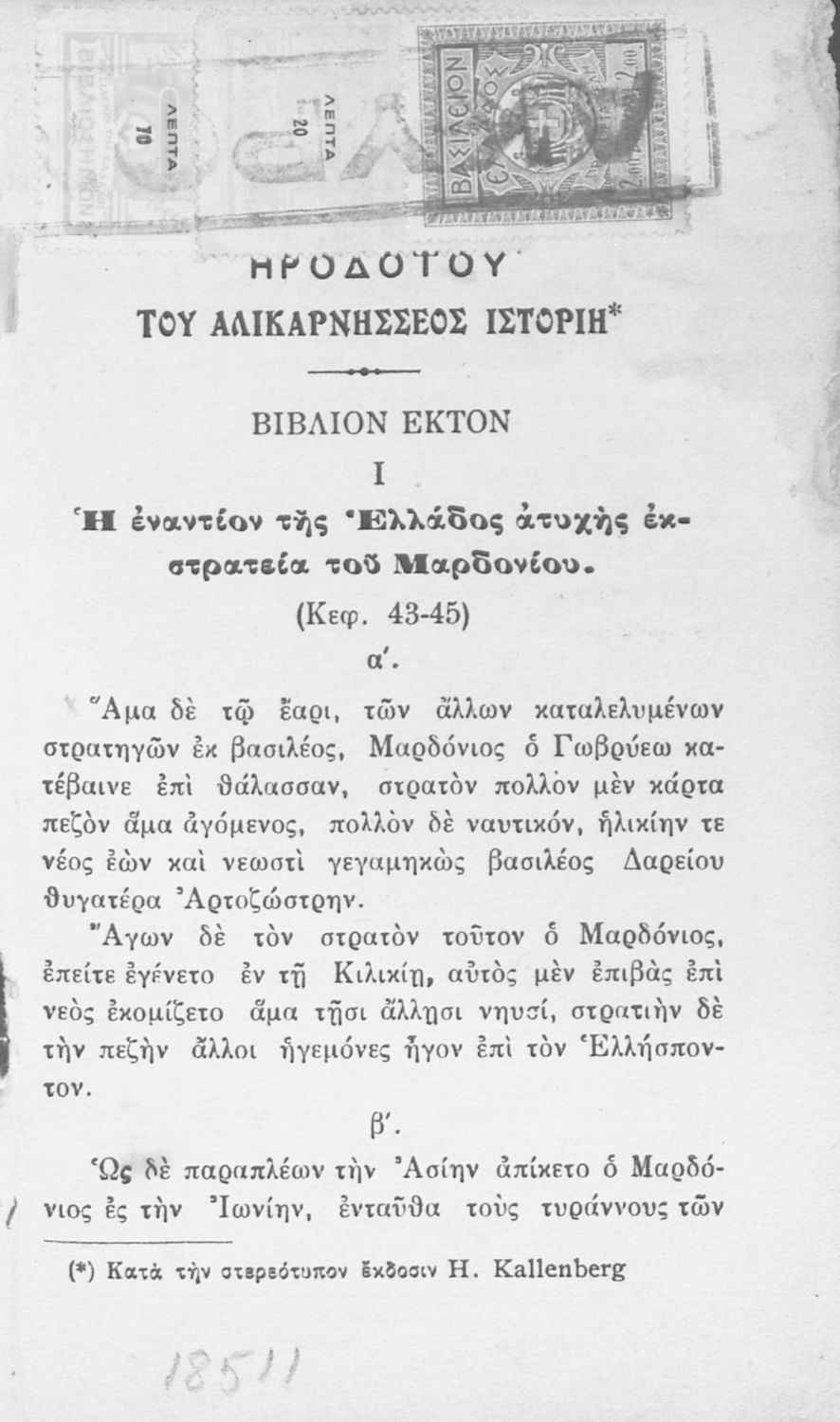 Κωδικός αναγνώρισης: 01-18511 Τίτλος: Ηρόδοτος εκλογαί. Προς χρήσιν της Α΄ Τάξεως των Γυμνασίων / Λυσίου Λόγοι. Προς χρήσιν της Α΄ Τάξεως των Γυμνασίων Συγγραφέας: Ηρόδοτος, Λυσίας, Νικολ. Σ. Γκινόπουλος (σχόλια) Μέγεθος και υπόστρωμα: Σχολικό εγχειρίδιο, μαλακό εξώφυλλο, 81 σελίδες. |