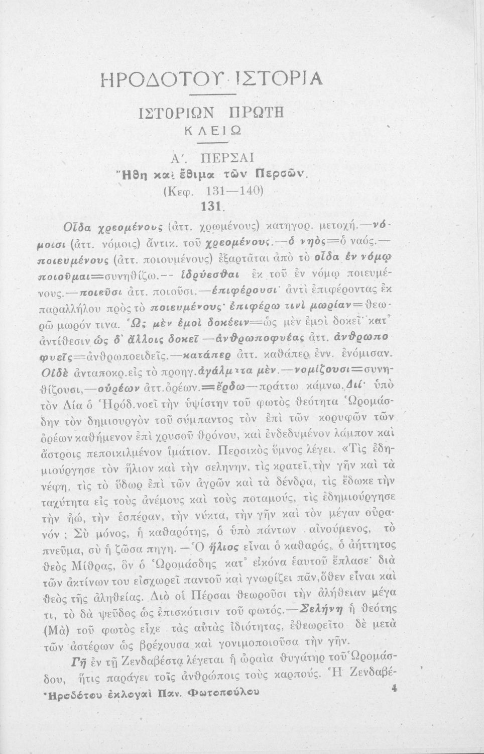 Μαθητικό βοήθημα Αρχαίων Ελληνικών Γ΄ Γυμνασίου που περιλαμβάνει εισαγωγή στη διάλεκτο του Ηρόδοτου, κείμενο, ερμηνευτικά, γραμματικά και συντακτικά σχόλια.