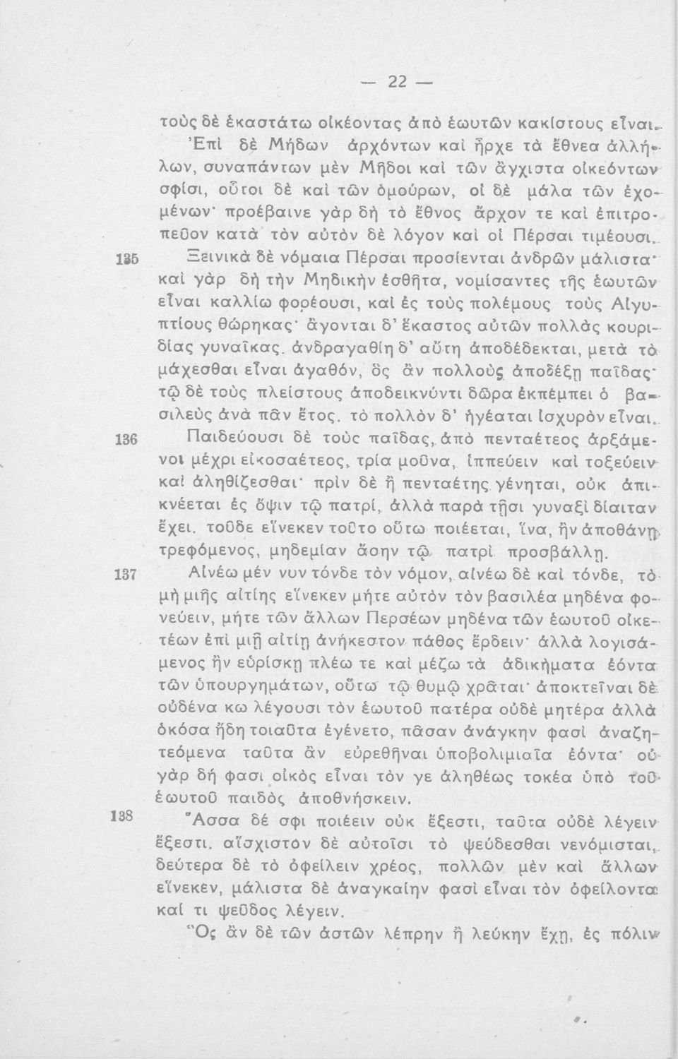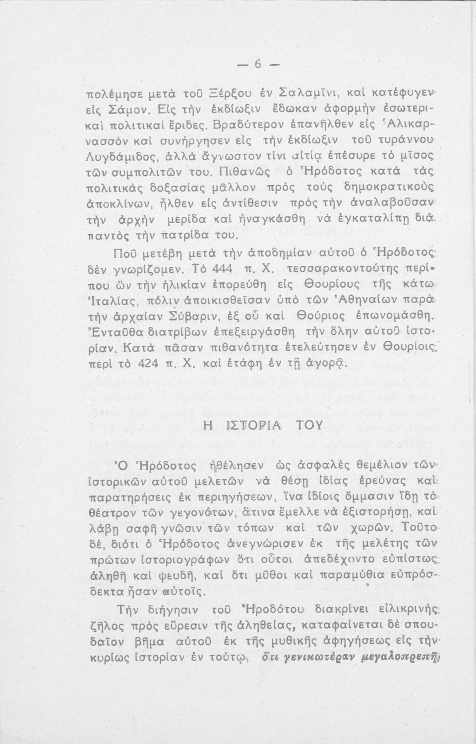Μαθητικό βοήθημα Αρχαίων Ελληνικών Γ΄ Γυμνασίου που περιλαμβάνει εισαγωγή στη διάλεκτο του Ηρόδοτου, κείμενο, ερμηνευτικά, γραμματικά και συντακτικά σχόλια.
