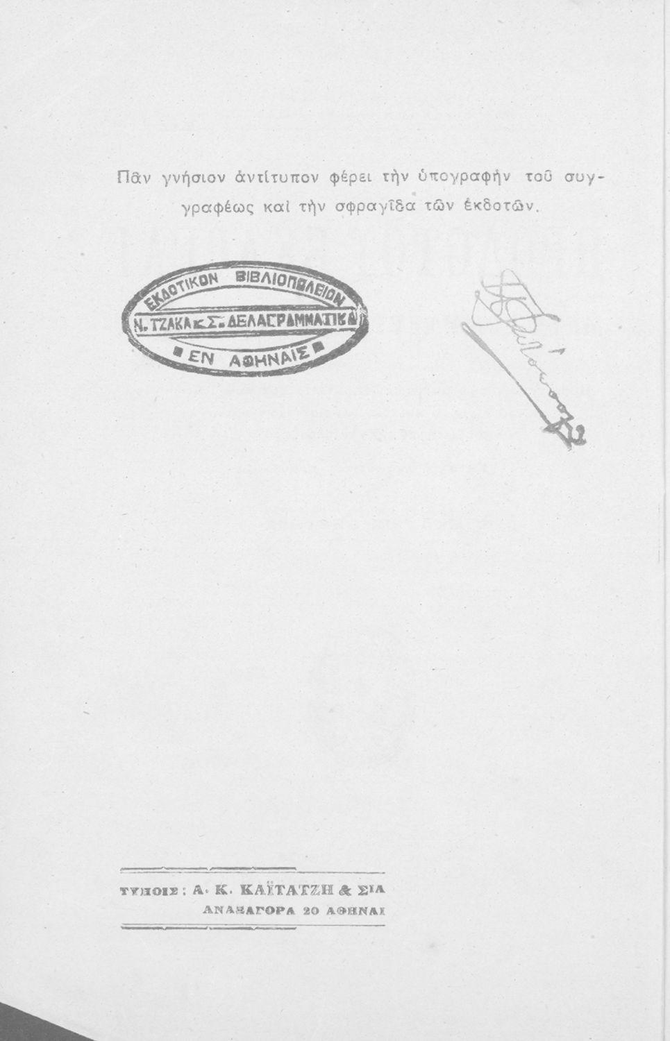 Εκδότης: Δημ. Ν. Τζάκας, Στεφ. Δελαγραμμάτικας Τόπος έκδοσης: Αθήνα Έκδοση: 2η |