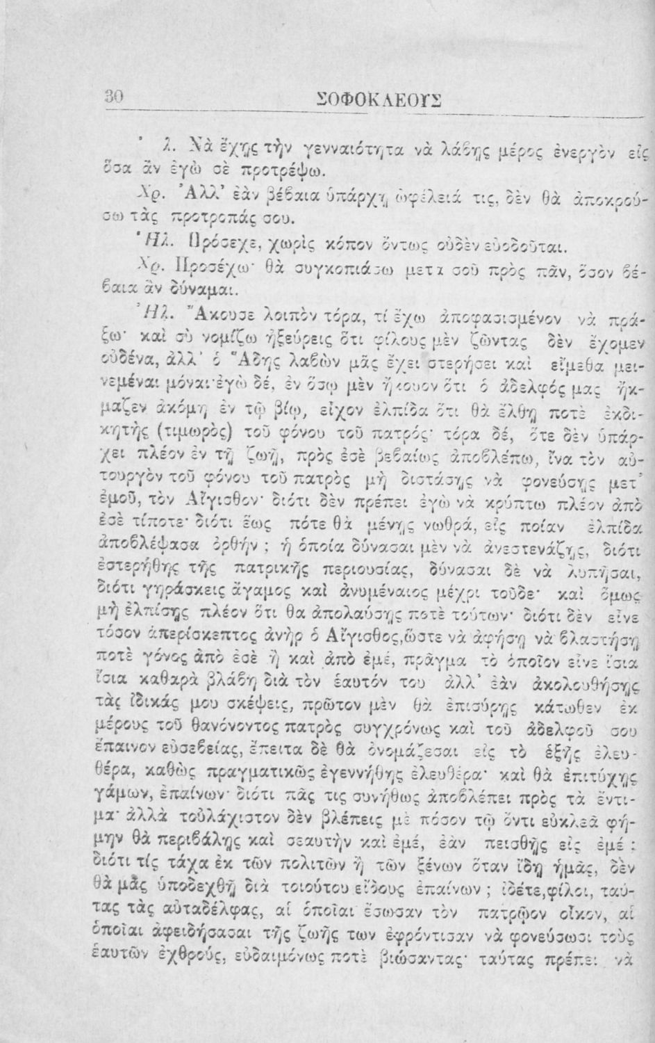 Μαθητικό βοήθημα Αρχαίων Ελληνικών που περιλαμβάνει την Ηλέκτρα του Σοφοκλή και γλωσσικές και πραγματικές σημειώσεις.