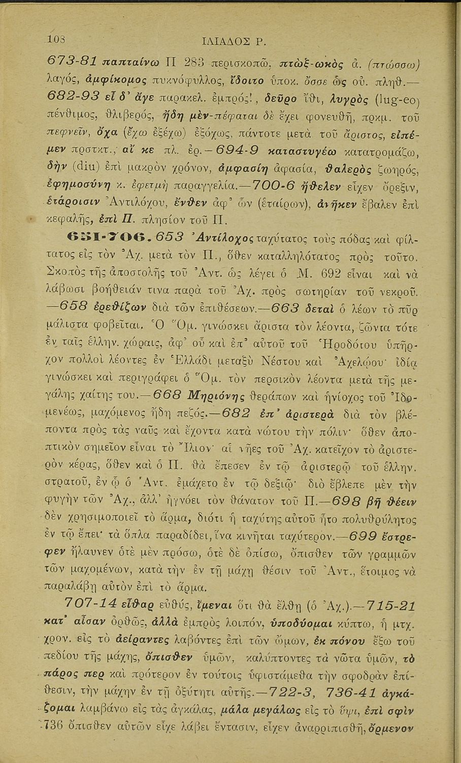 Μαθητικό βοήθημα γυμνασίου για το μάθημα των Αρχαίων Ελληνικών. Περιλαμβάνει τις ραψωδίες Ο, Π, Ρ, Σ, Τ, Χ, Ψ, Ω. Περιέχει πραγματολογικά σχόλια και λεξιλογικές παρατηρήσεις.