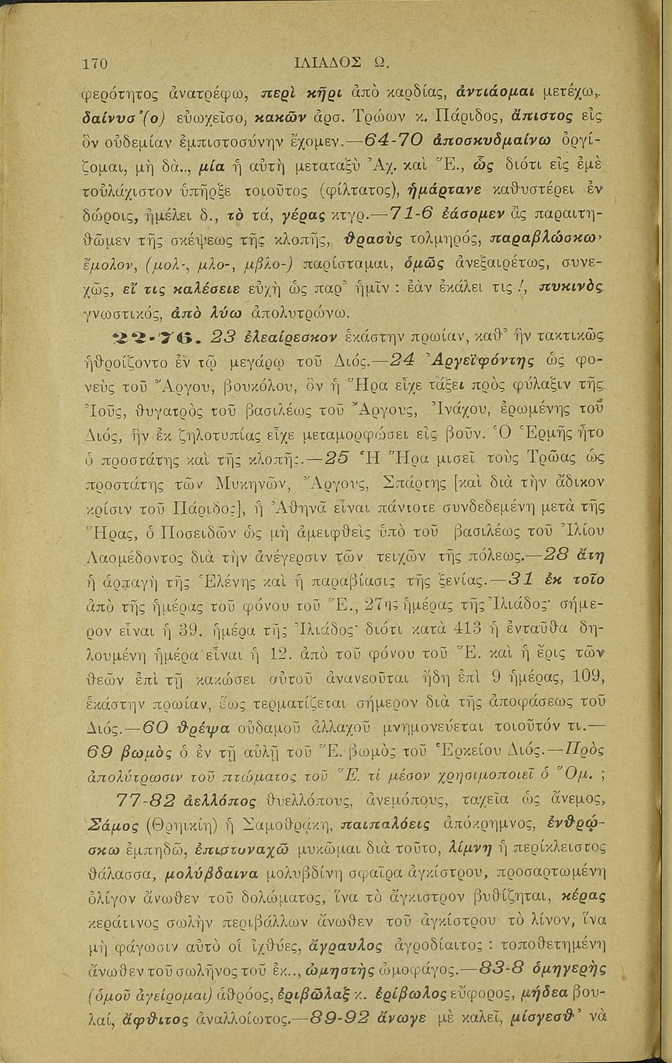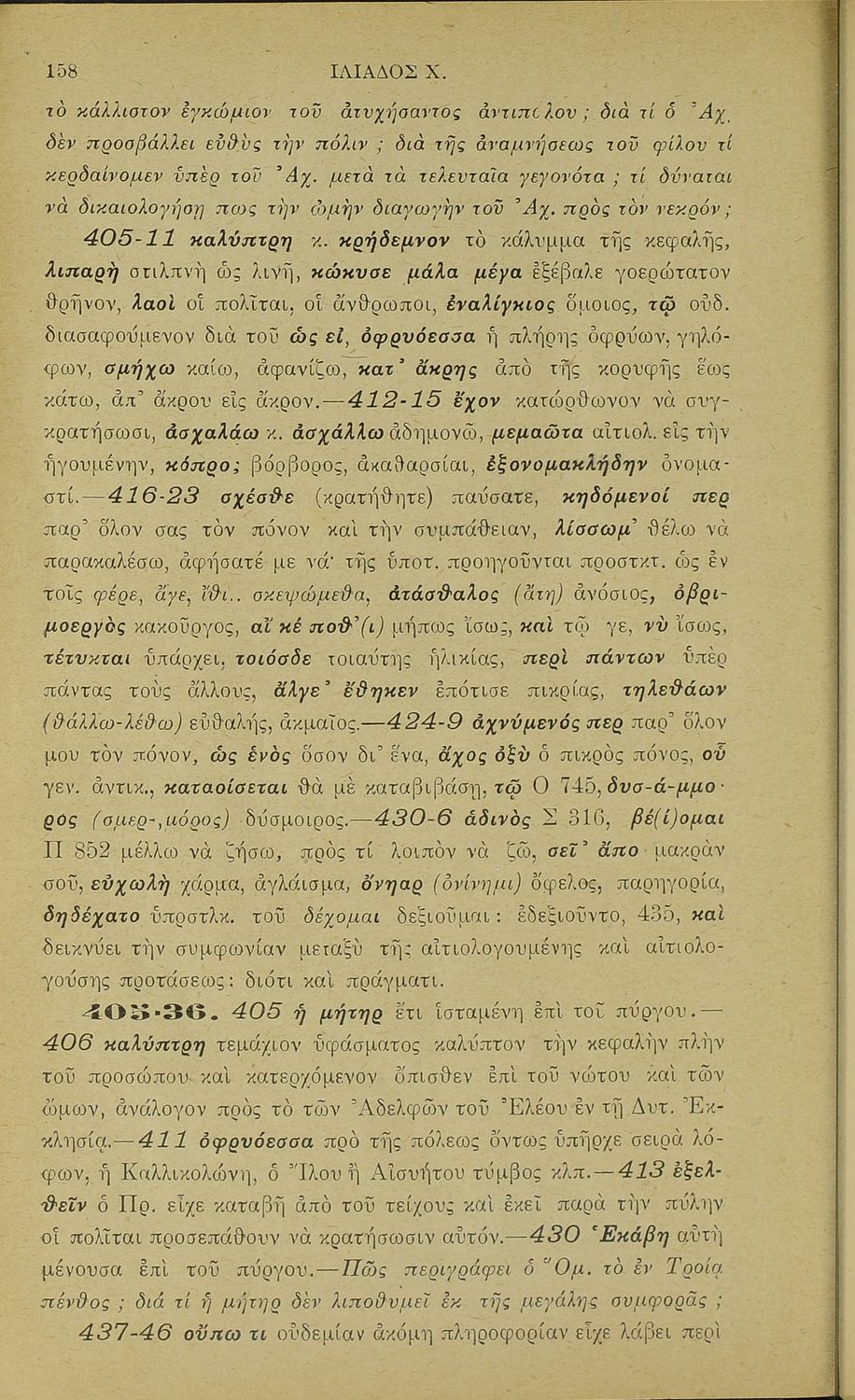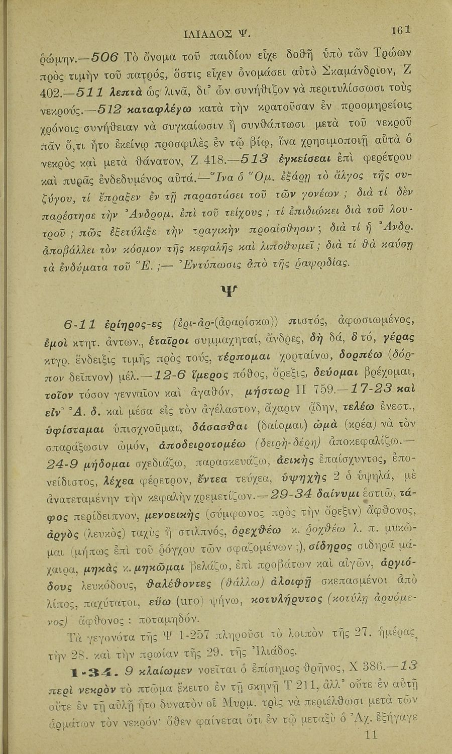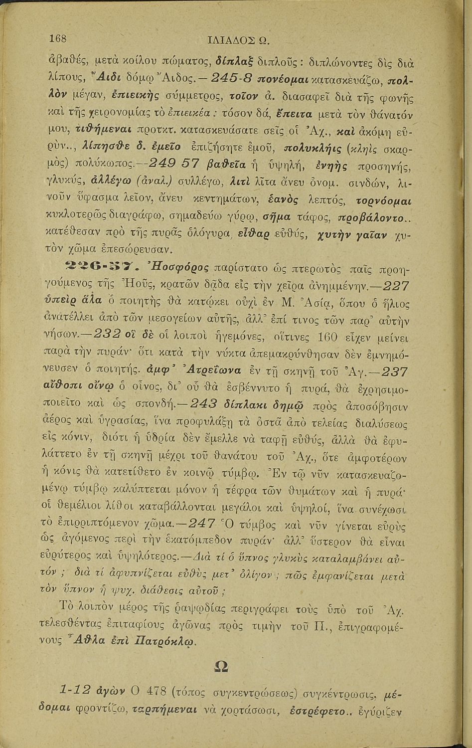 Μαθητικό βοήθημα του Ελληνικού Σχολείου, των Παρθεναγωγείων και του Γυμνασίου για το μάθημα των Αρχαίων Ελληνικών. Περιέχει τις ραψωδίες Ο, Π, Ρ, Σ, Τ, Χ, ψ, Ω από το πρωτότυπο με σχόλια και ερμηνευτικές ...