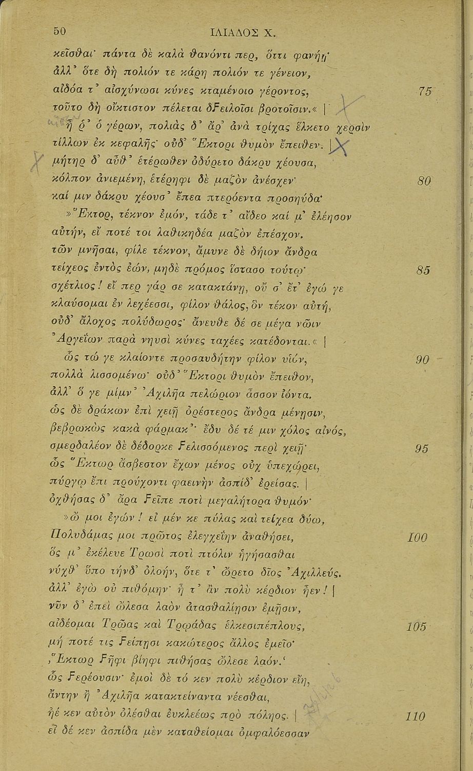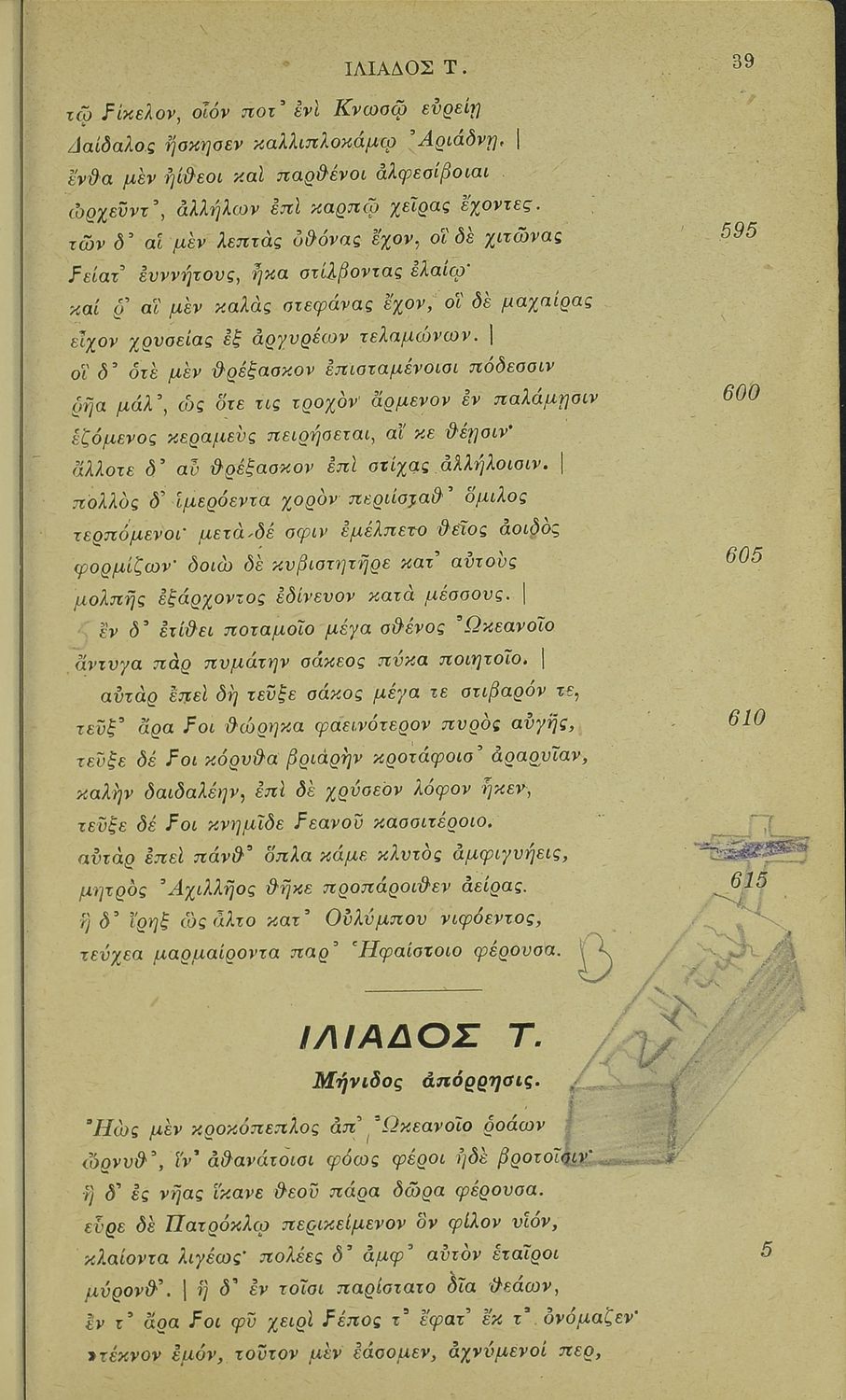 Μαθητικό βοήθημα του Ελληνικού Σχολείου, των Παρθεναγωγείων και του Γυμνασίου για το μάθημα των Αρχαίων Ελληνικών. Περιέχει τις ραψωδίες Ο, Π, Ρ, Σ, Τ, Χ, ψ, Ω από το πρωτότυπο με σχόλια και ερμηνευτικές ...