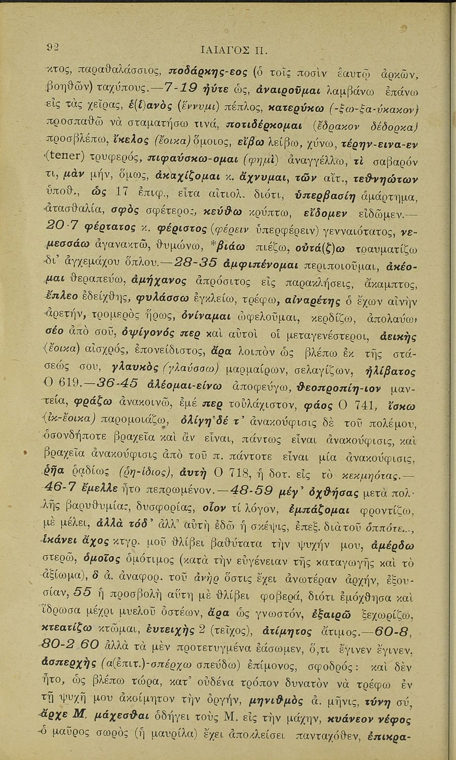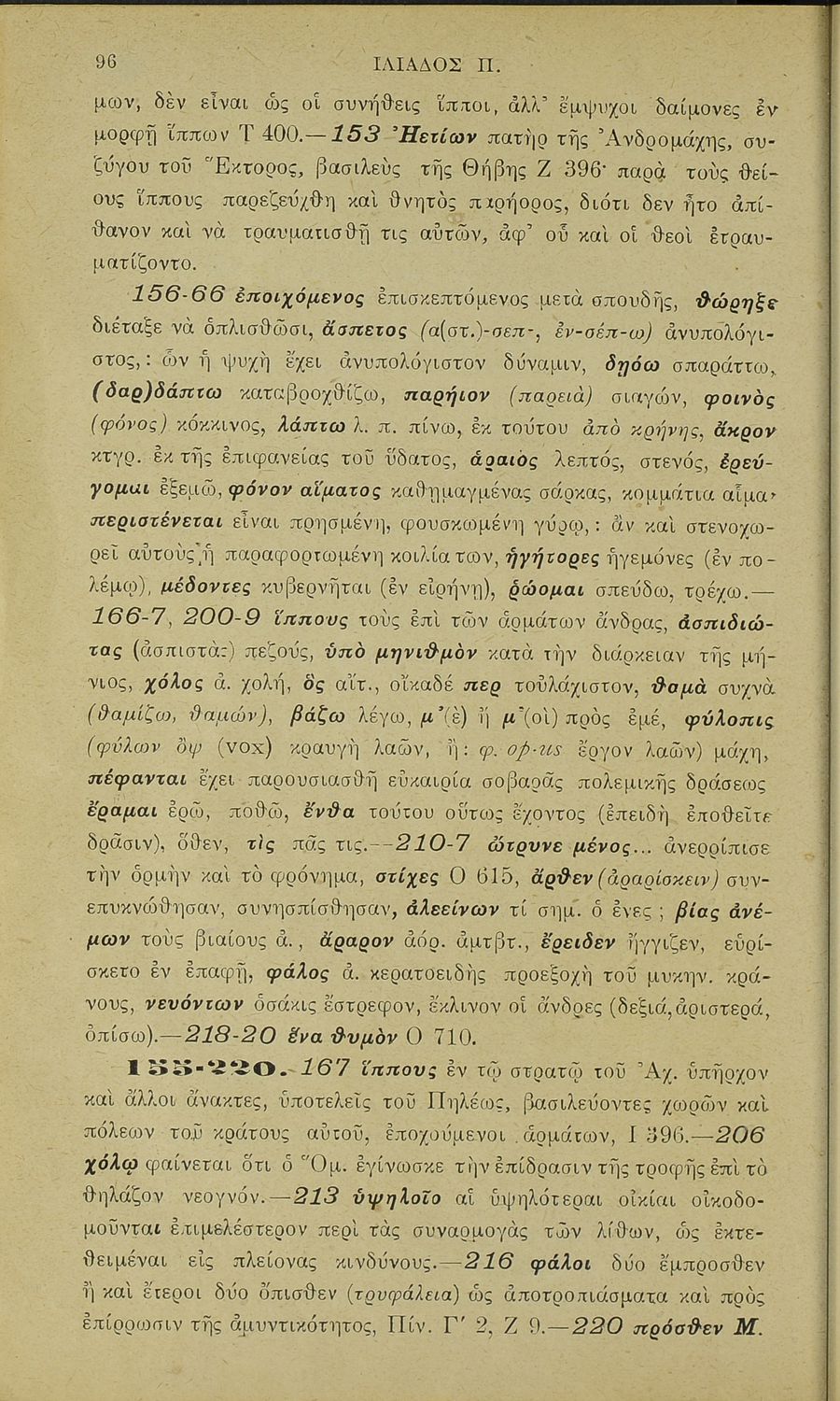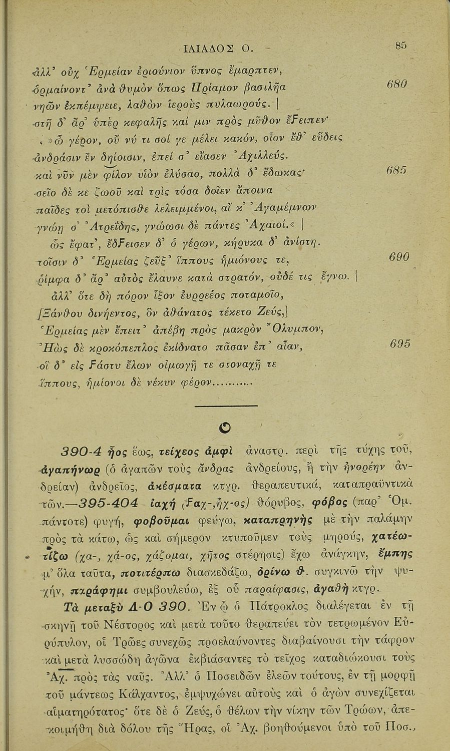 Μαθητικό βοήθημα του Ελληνικού Σχολείου, των Παρθεναγωγείων και του Γυμνασίου για το μάθημα των Αρχαίων Ελληνικών. Περιέχει τις ραψωδίες Ο, Π, Ρ, Σ, Τ, Χ, ψ, Ω από το πρωτότυπο με σχόλια και ερμηνευτικές ...