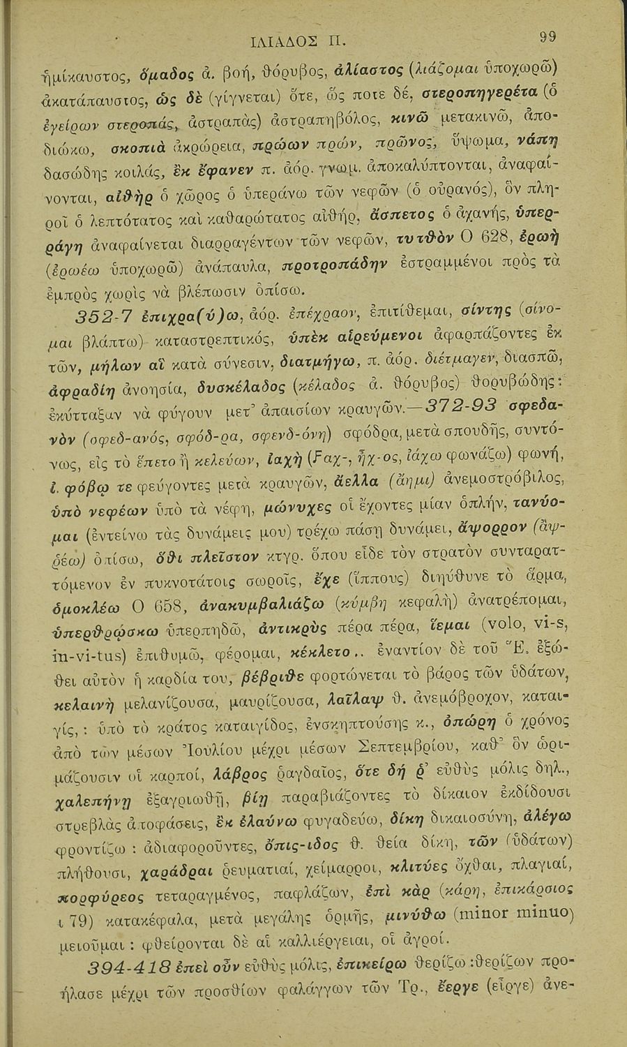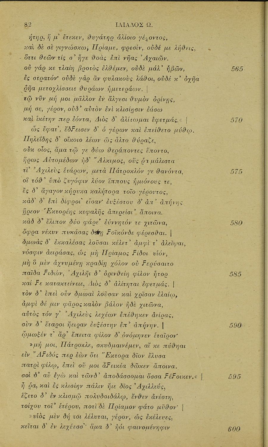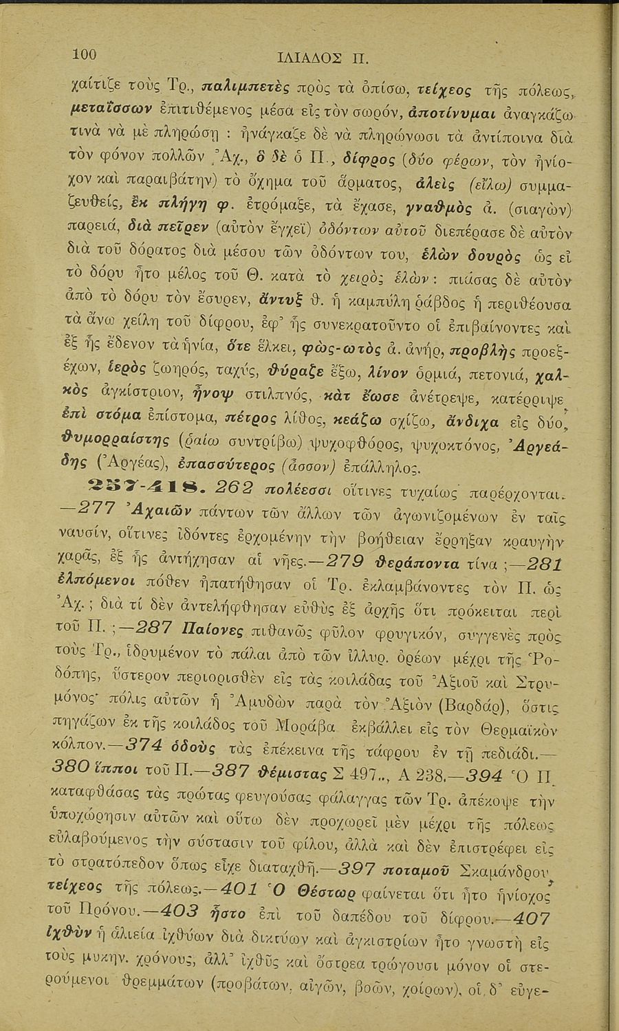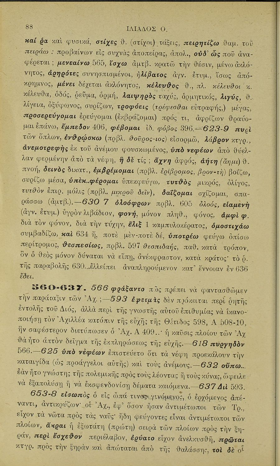 Μαθητικό βοήθημα του Ελληνικού Σχολείου, των Παρθεναγωγείων και του Γυμνασίου για το μάθημα των Αρχαίων Ελληνικών. Περιέχει τις ραψωδίες Ο, Π, Ρ, Σ, Τ, Χ, ψ, Ω από το πρωτότυπο με σχόλια και ερμηνευτικές ...