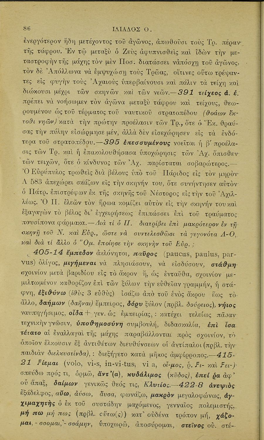 Μαθητικό βοήθημα Αρχαίων Ελληνικών που περιλαμβάνει τις ραψωδίες Ο, Π, Ρ, Σ, Τ, Χ, Ψ, Ω από την Ιλιάδα του Ομήρου και ερμηνευτικά, γλωσσικά και πραγματολογικά σχόλια.