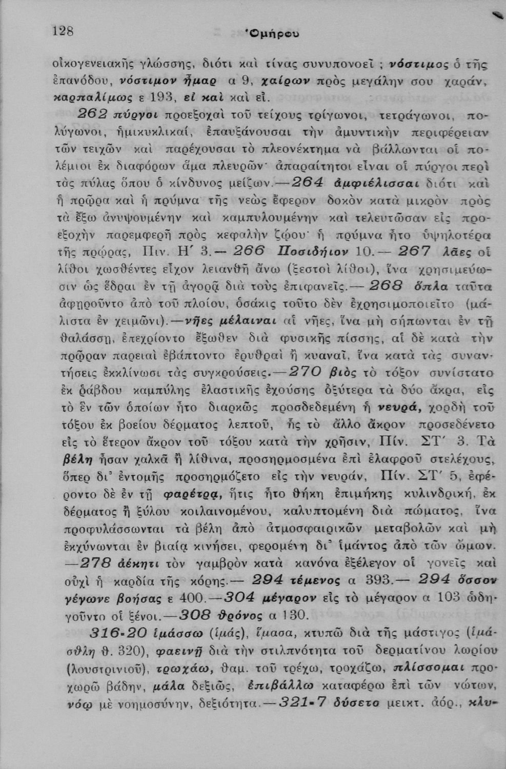 Σχολικό εγχειρίδιο Αρχαίων Ελληνικών για την Δ΄ τάξη των Εξαταξίων Γυμνασίων που περιλαμβάνει ετυμολογικά σχόλια στις ραψωδίες Ο-Π-Ρ-Σ-Τ-Χ-Ψ-Ω της Ιλιάδας