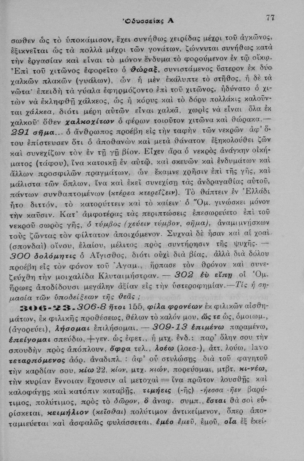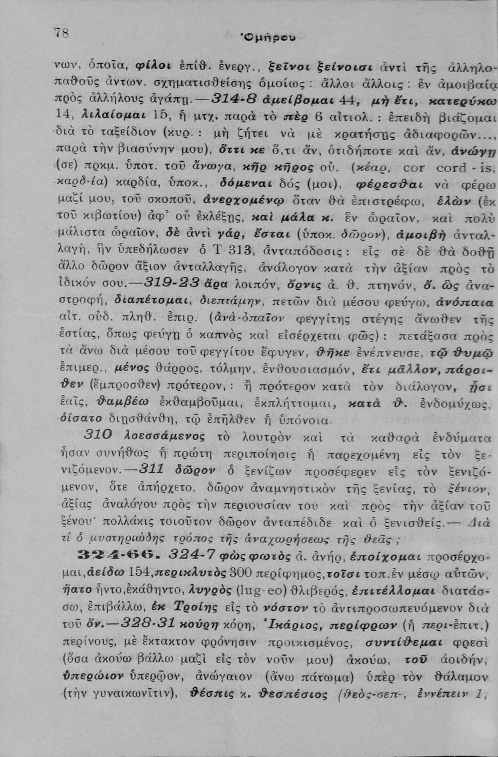 Σχολικό εγχειρίδιο Αρχαίων Ελληνικών για την Δ΄ τάξη των Εξαταξίων Γυμνασίων που περιλαμβάνει ετυμολογικά σχόλια στις ραψωδίες Ο-Π-Ρ-Σ-Τ-Χ-Ψ-Ω της Ιλιάδας