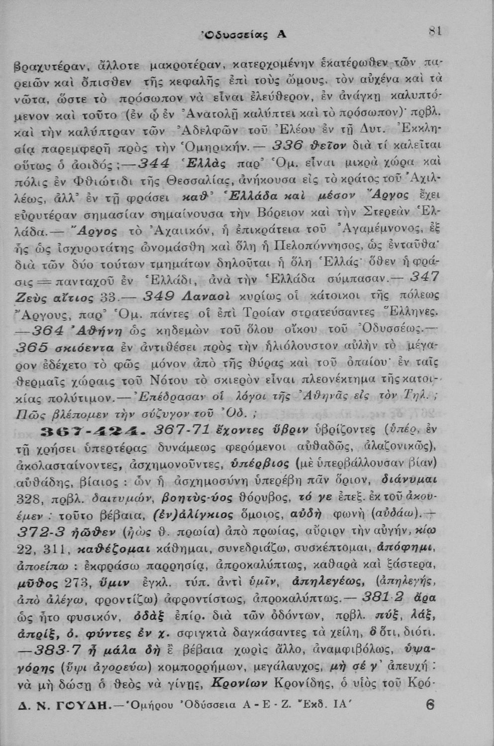 Όμηρος, Δημ. Ν. Γουδής (σχόλια)