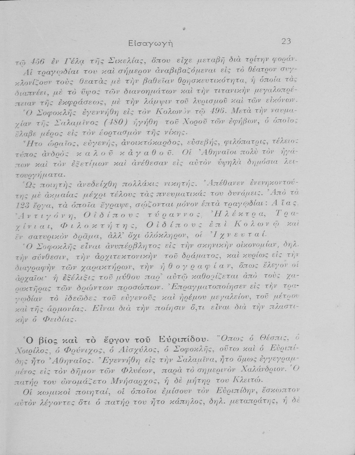 Σχολικό εγχειρίδιο Αρχαίων Ελληνικών Ε΄ και ΣΤ΄ Γυμνασίου που περιλαμβάνει εισαγωγή στο αρχαίο δράμα, στη ζωή και το έργο μεγάλων τραγικών ποιητών, την τραγωδία του Ευριπίδη Ιφιγένεια εν Ταύροις, και ερμηνευτικές σημειώσεις