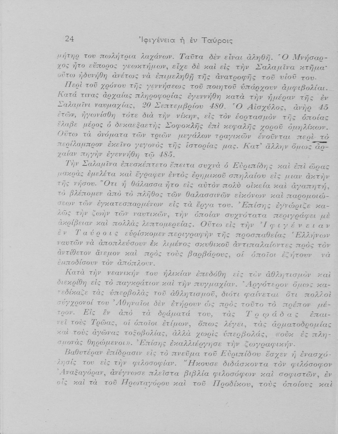 Ευριπίδου Ιφιγένεια η εν Ταύροις δια την Ε΄ τάξιν των Εξαταξίων Γυμνασίων παλαιού τύπου και την ΣΤ΄ των Εξαταξίων Γυμνασίων νέου τύπου