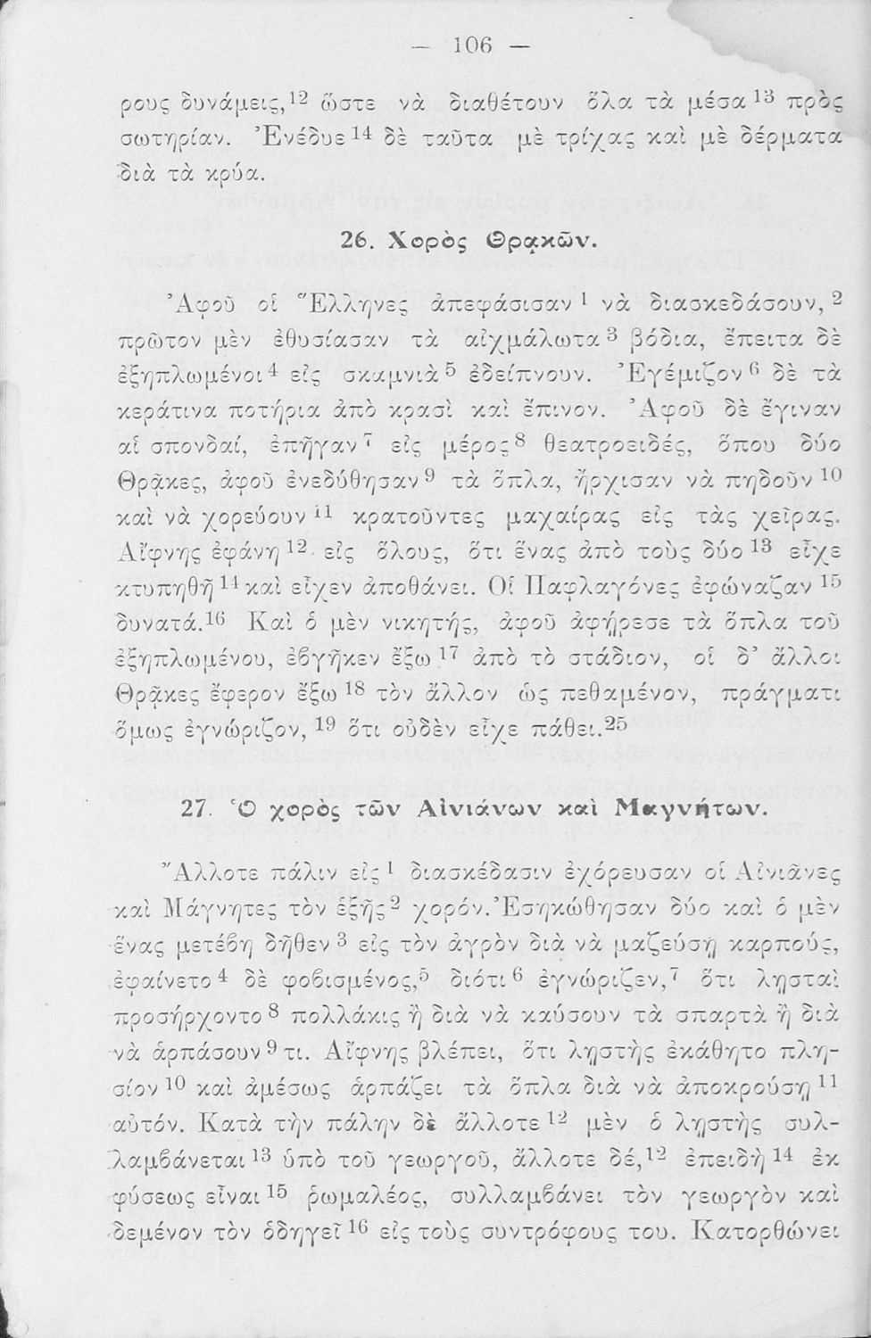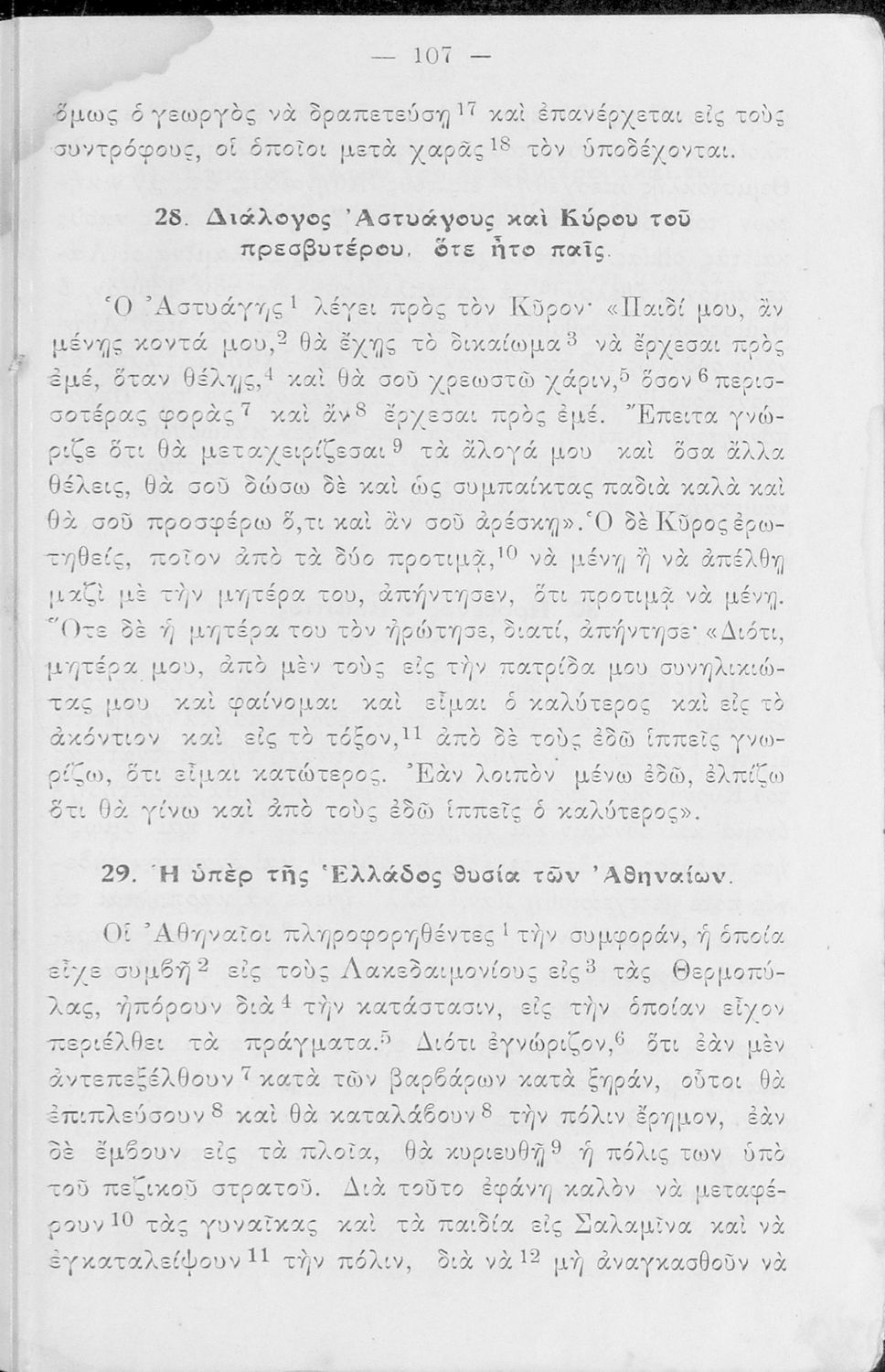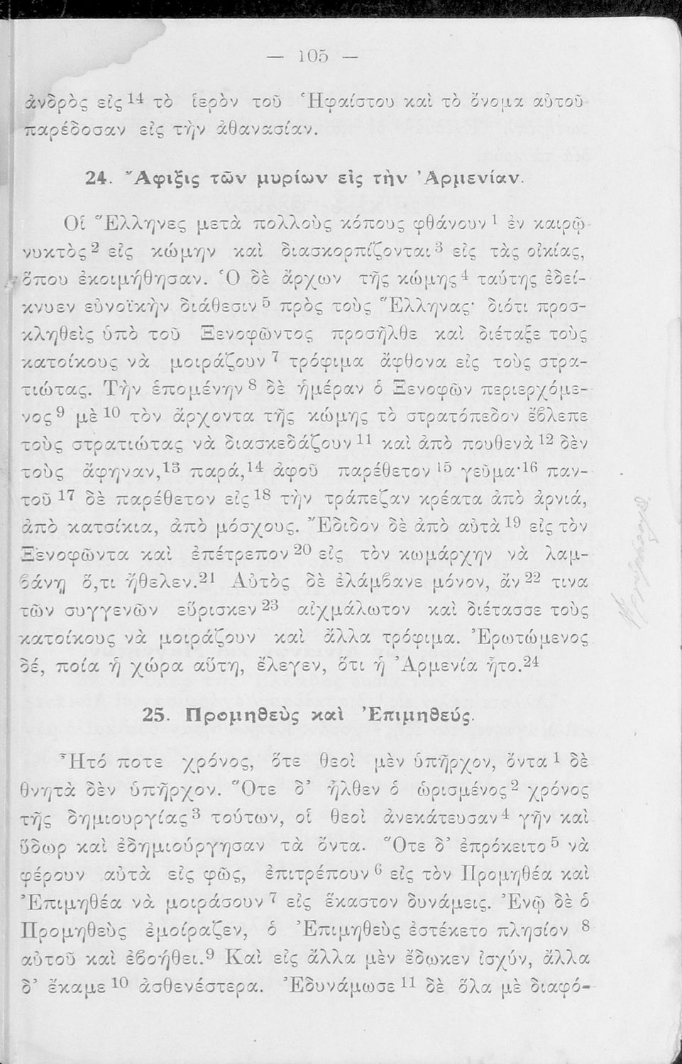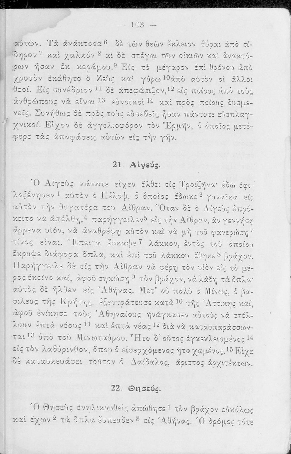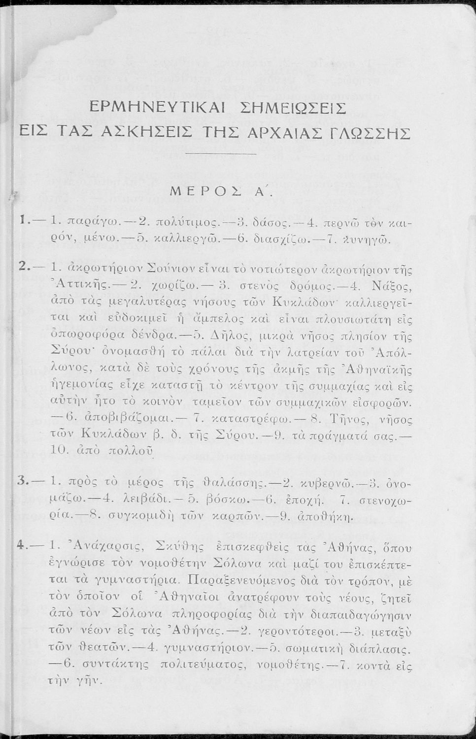 Σχολικό Εγχειρίδιο Αρχαίων Ελληνικών Α' και Β΄ Γυμνασίου που περιλαμβάνει κείμενα προσαρμοσμένα στη διδασκαλία των γραμματικών και συντακτικών φαινομένων, και ερμηνευτικές και λεξιλογικές σημειώσεις.
