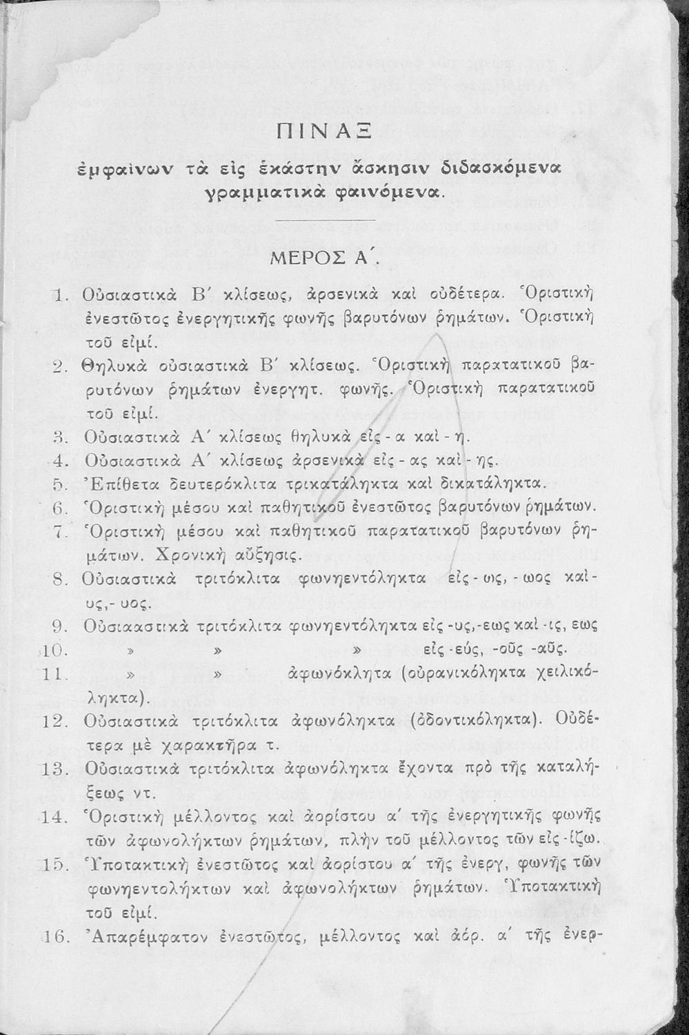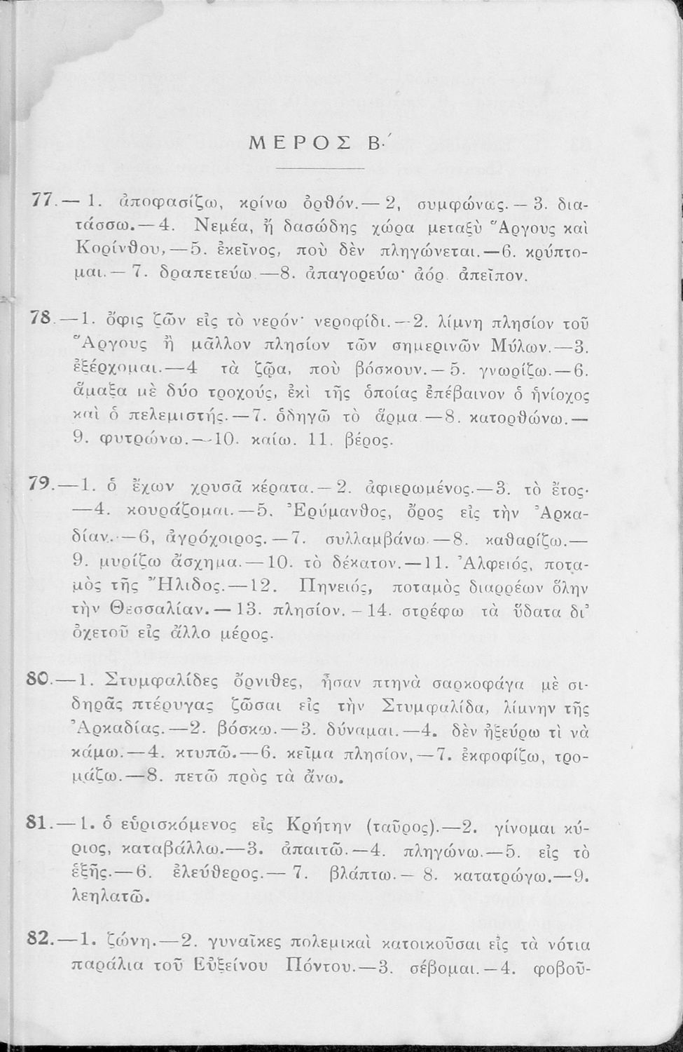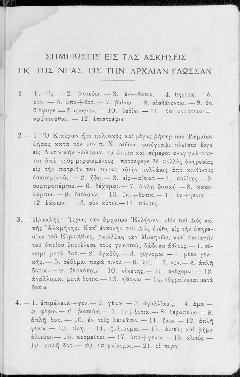 Σχολικό εγχειρίδιο Αρχαίων Ελληνικών Γυμνασίου που περιέχει κείμενα βασισμένα στην αρχαία ελληνική ιστορία και μυθολογία και γραμματικές, συντακτικές και ετυμολογικές παρατηρήσεις.