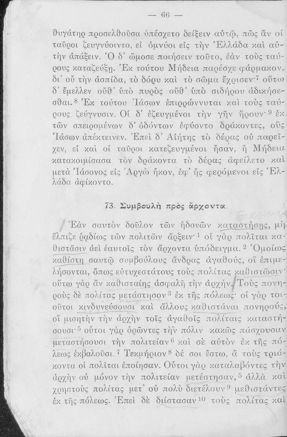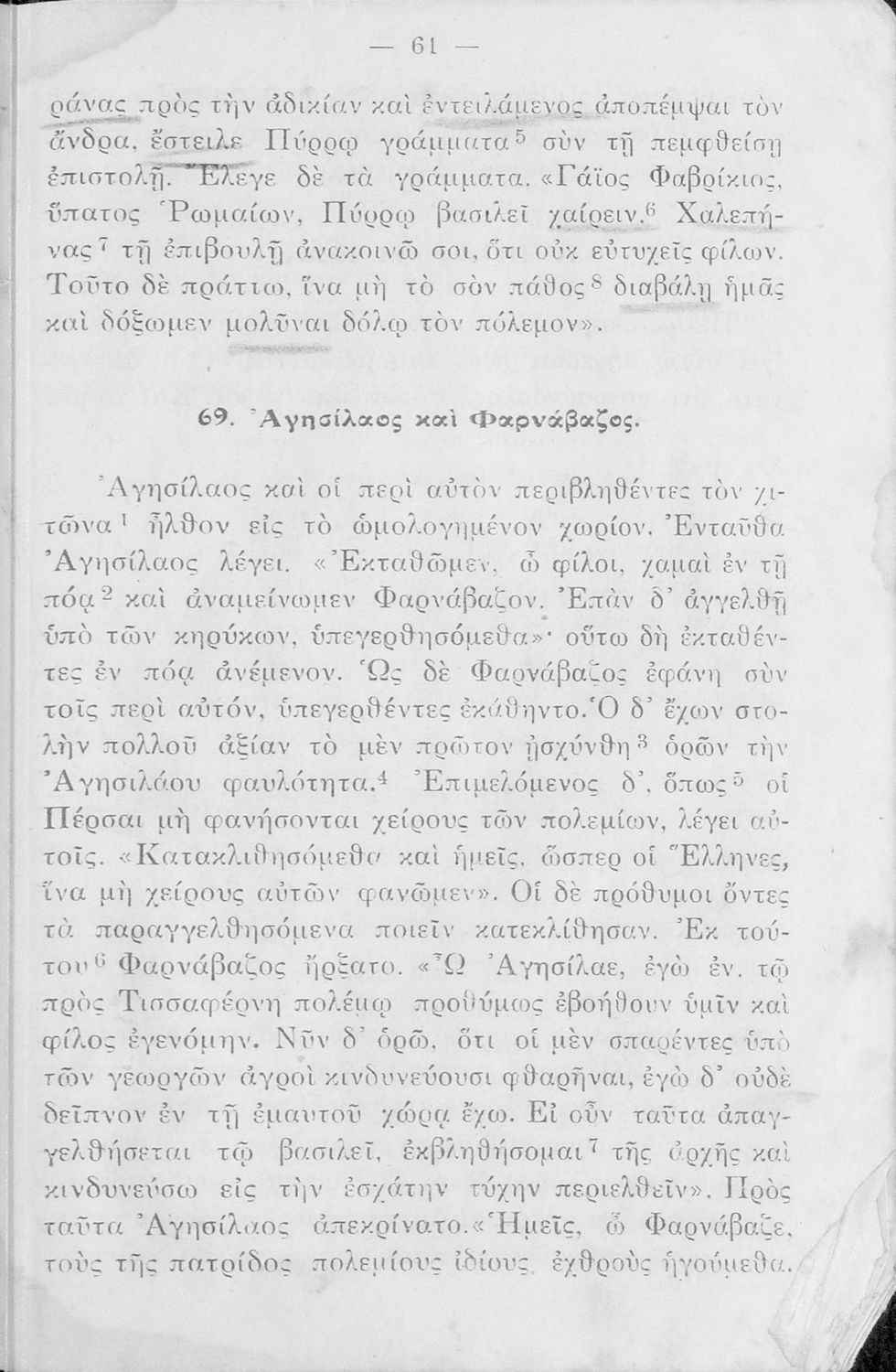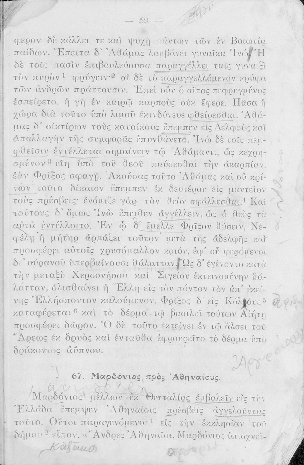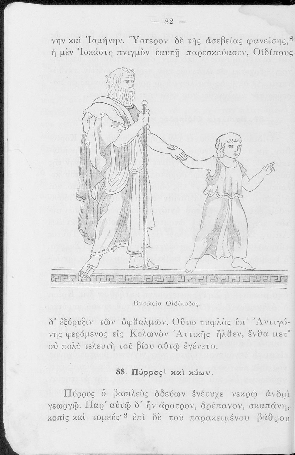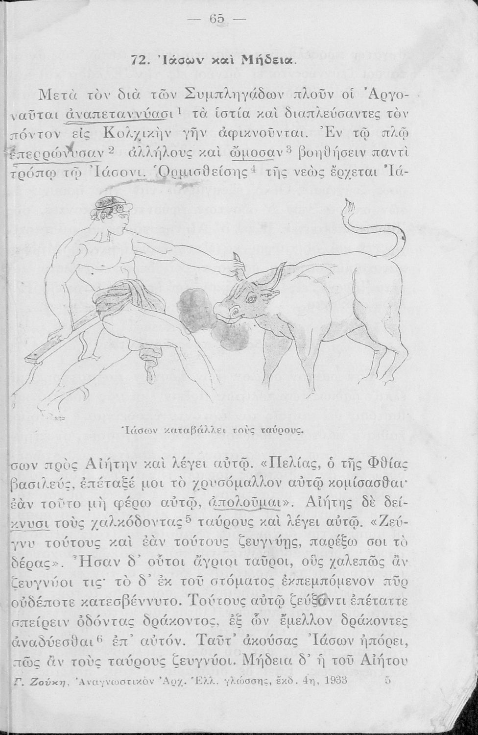 Σχολικό Εγχειρίδιο Αρχαίων Ελληνικών Α' και Β΄ Γυμνασίου που περιλαμβάνει κείμενα προσαρμοσμένα στη διδασκαλία των γραμματικών και συντακτικών φαινομένων, και ερμηνευτικές και λεξιλογικές σημειώσεις.