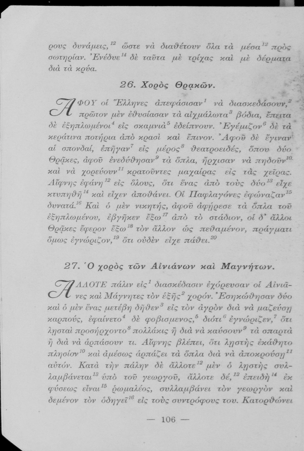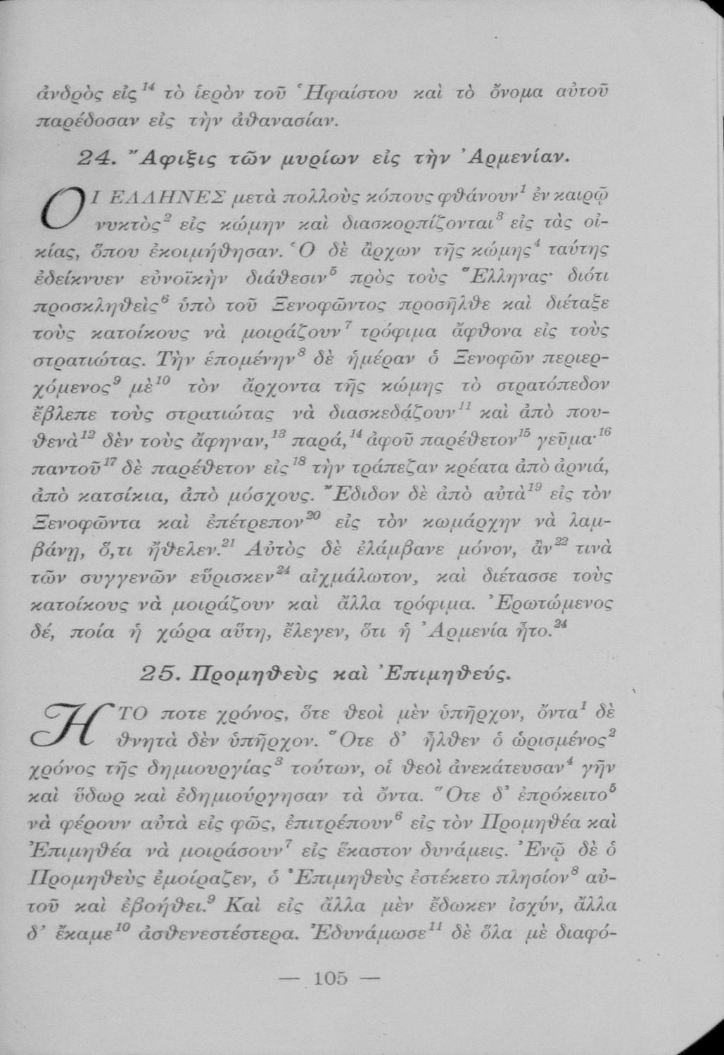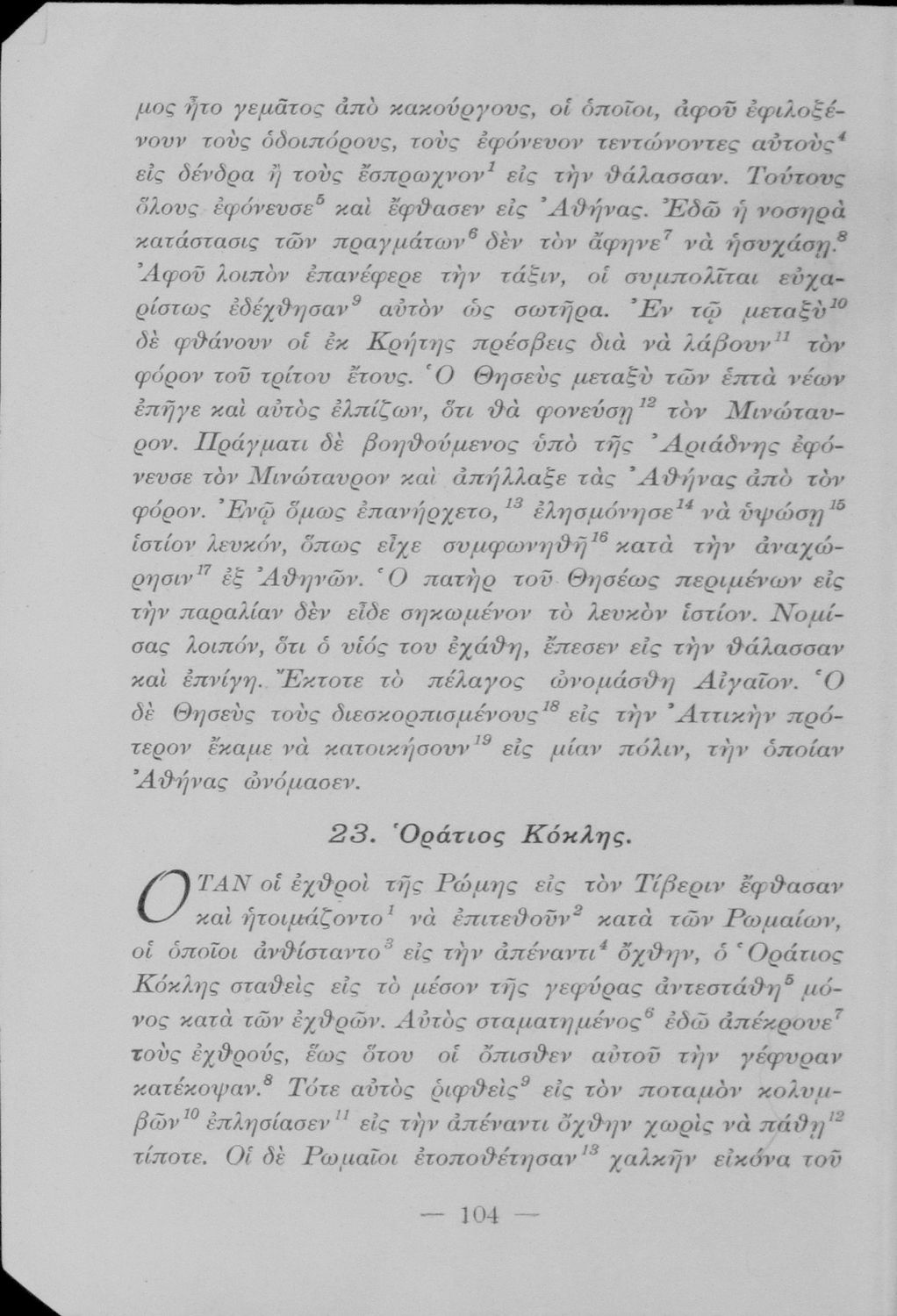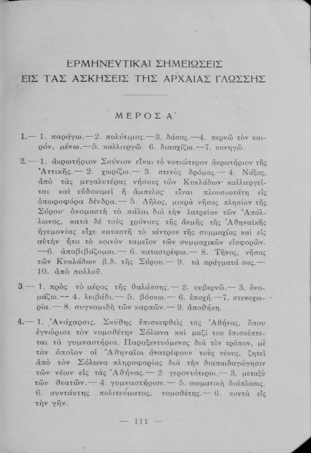 Σχολικό εγχειρίδιο Αρχαίων Ελληνικών για τις Α΄ και Β΄ τάξεις των Εξαταξίων Γυμνασίων που περιλαμβάνει σύντομα κείμενα εμπνευσμένα από την αρχαία ελληνική ιστορία και μυθολογία που χρησιμοποιούνται για τη διδασκαλία γραμματικών και συντακτικών φαινομένων καθώς και ερμηνευτικές σημειώσεις.