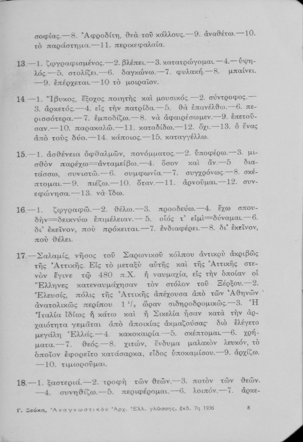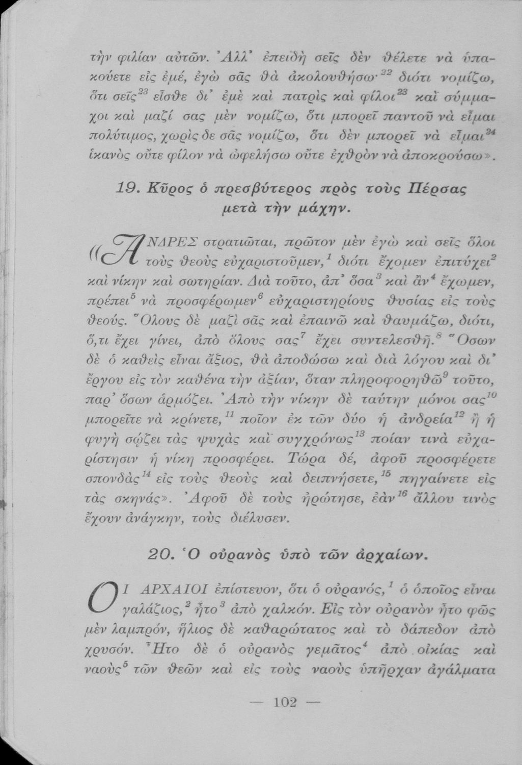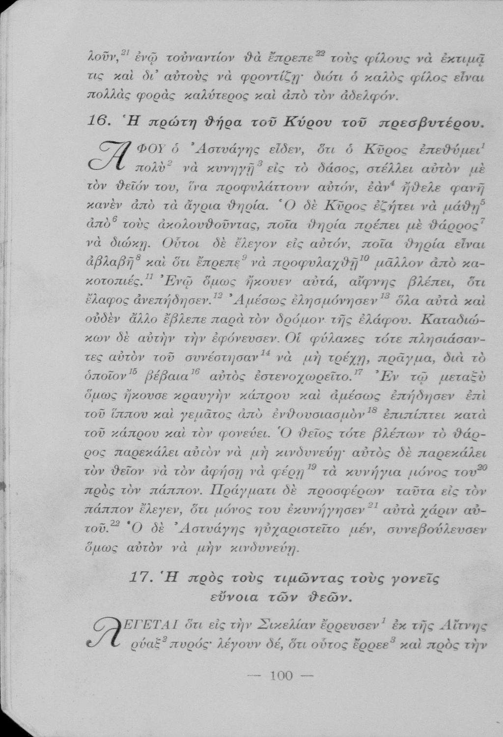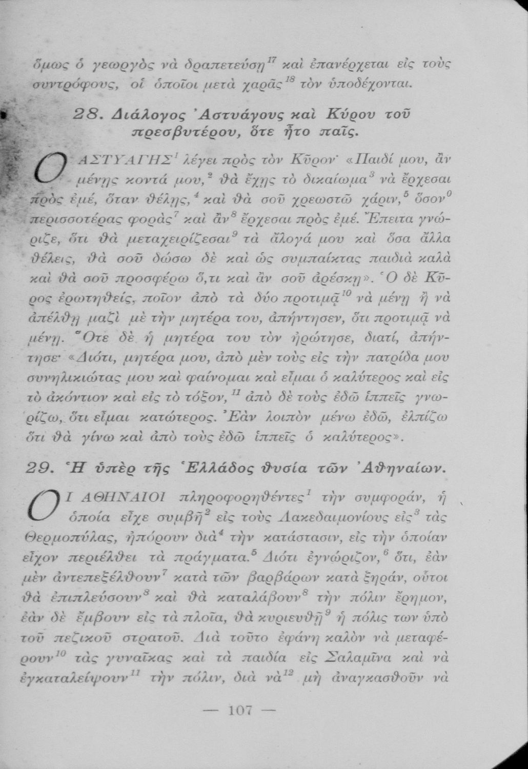 Σχολικό εγχειρίδιο Αρχαίων Ελληνικών για τις Α΄ και Β΄ τάξεις των Εξαταξίων Γυμνασίων που περιλαμβάνει σύντομα κείμενα εμπνευσμένα από την αρχαία ελληνική ιστορία και μυθολογία που χρησιμοποιούνται για τη διδασκαλία γραμματικών και συντακτικών φαινομένων καθώς και ερμηνευτικές σημειώσεις.