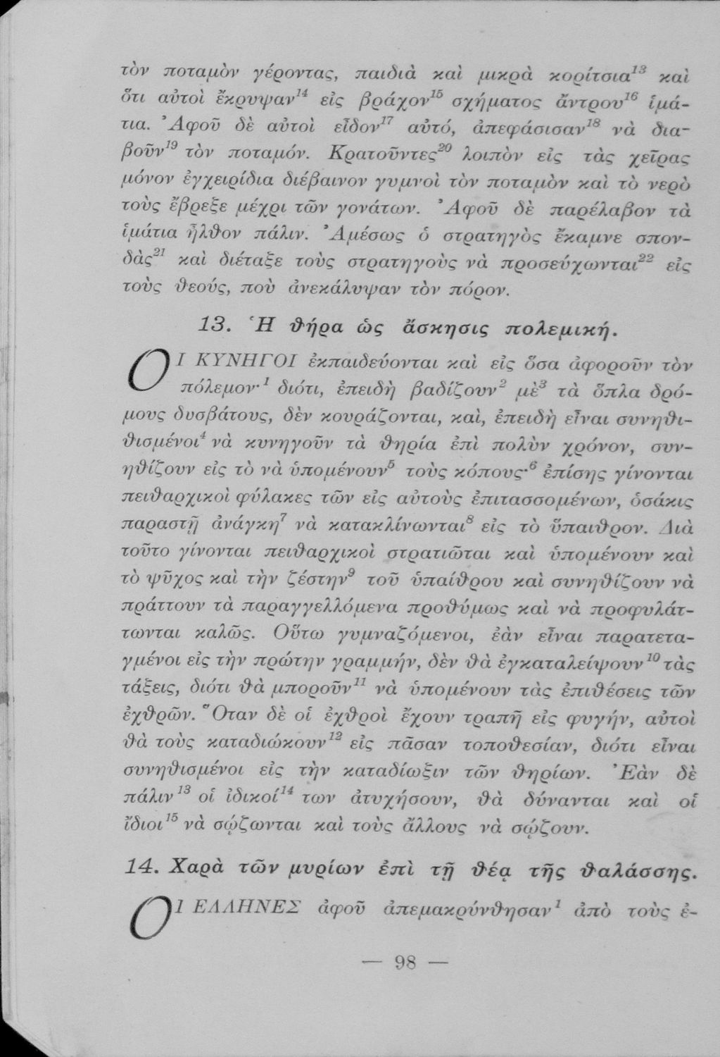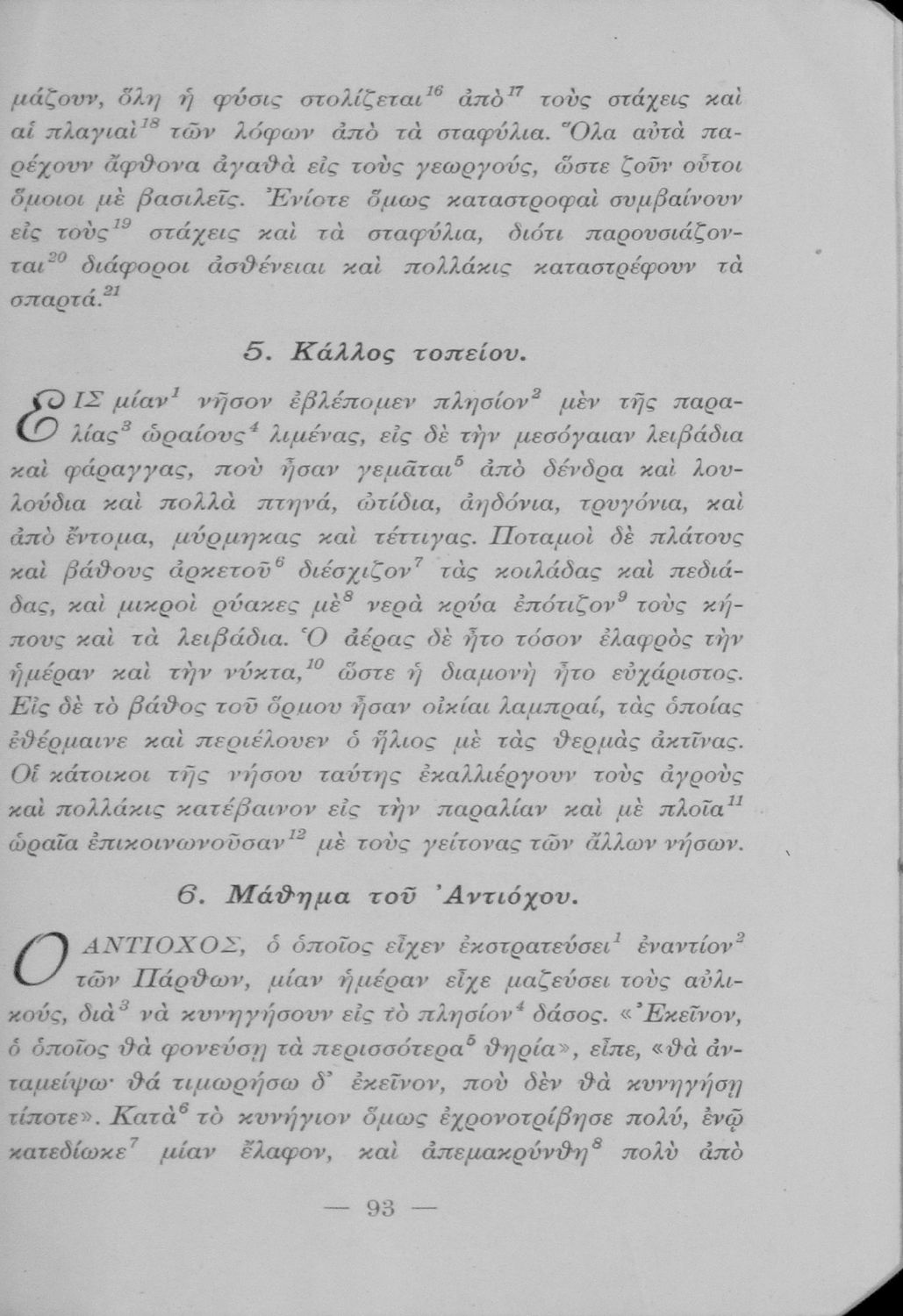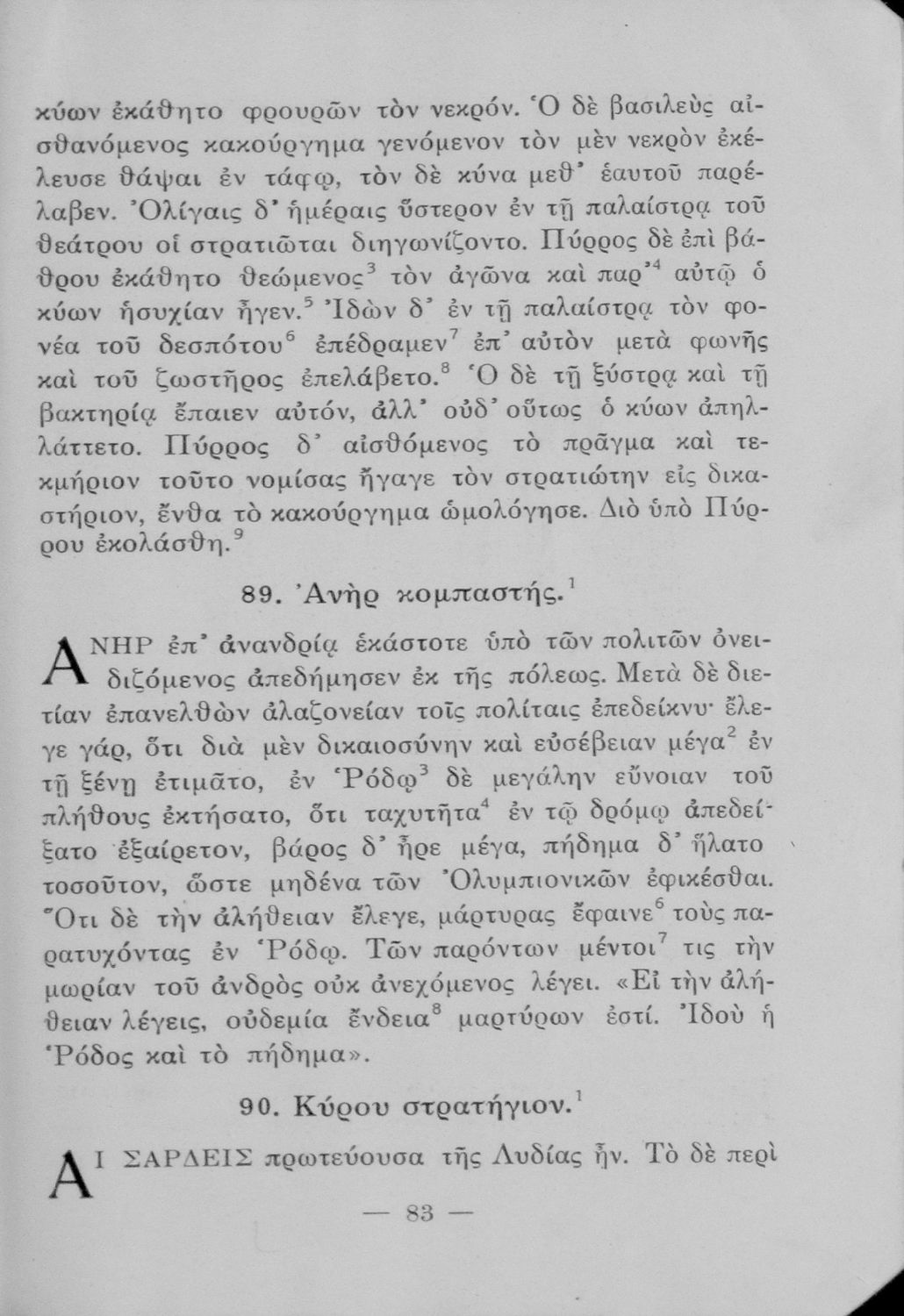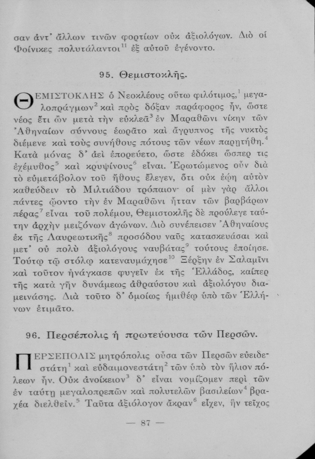 Σχολικό εγχειρίδιο Αρχαίων Ελληνικών για τις Α΄ και Β΄ τάξεις των Εξαταξίων Γυμνασίων που περιλαμβάνει σύντομα κείμενα εμπνευσμένα από την αρχαία ελληνική ιστορία και μυθολογία που χρησιμοποιούνται για τη διδασκαλία γραμματικών και συντακτικών φαινομένων καθώς και ερμηνευτικές σημειώσεις.