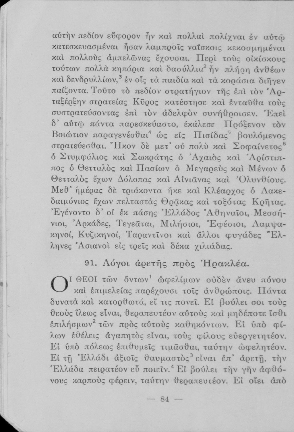 Βαθμίδα εκπαίδευσης: Δευτεροβάθμια Τάξη: Α' Γυμνασίου / Β' Γυμνασίου Μάθημα: Αρχαία Ελληνικά Γλώσσα: Καθαρεύουσα Παρουσίαση περιεχομένου: Σχολικό εγχειρίδιο Αρχαίων Ελληνικών για τις Α΄ και Β΄ τάξεις των Εξαταξίων Γυμνασίων που περιλαμβάνει σύντομα κείμενα εμπνευσμένα από την αρχαία ελληνική ιστορία και μυθολογία που χρησιμοποιούνται για τη διδασκαλία γραμματικών και συντακτικών φαινομένων καθώς και ερμηνευτικές σημειώσεις. |
