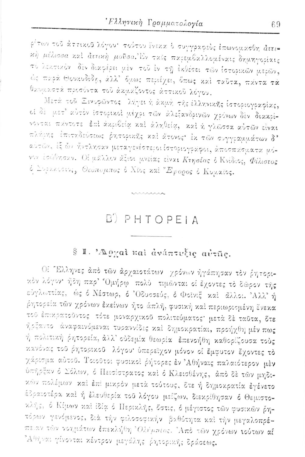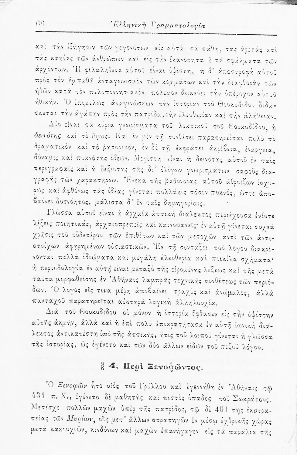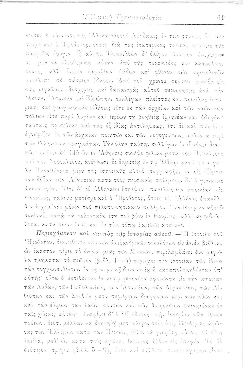 Βαθμίδα εκπαίδευσης: Δευτεροβάθμια Τάξη: Γυμνάσιο Μάθημα: Νέα Ελληνικά Γλώσσα: Καθαρεύουσα Παρουσίαση περιεχομένου: Σχολικό εγχειρίδιο Αρχαίων και Νέων Ελληνικών για το Γυμνάσιο που εξετάζει την εξέλιξη της ποίησης και του πεζού λόγου κατά την Αρχαϊκή, Κλασσική, Αλεξανδρινή και Ρωμαϊκή και Βυζαντινή περίοδο. |