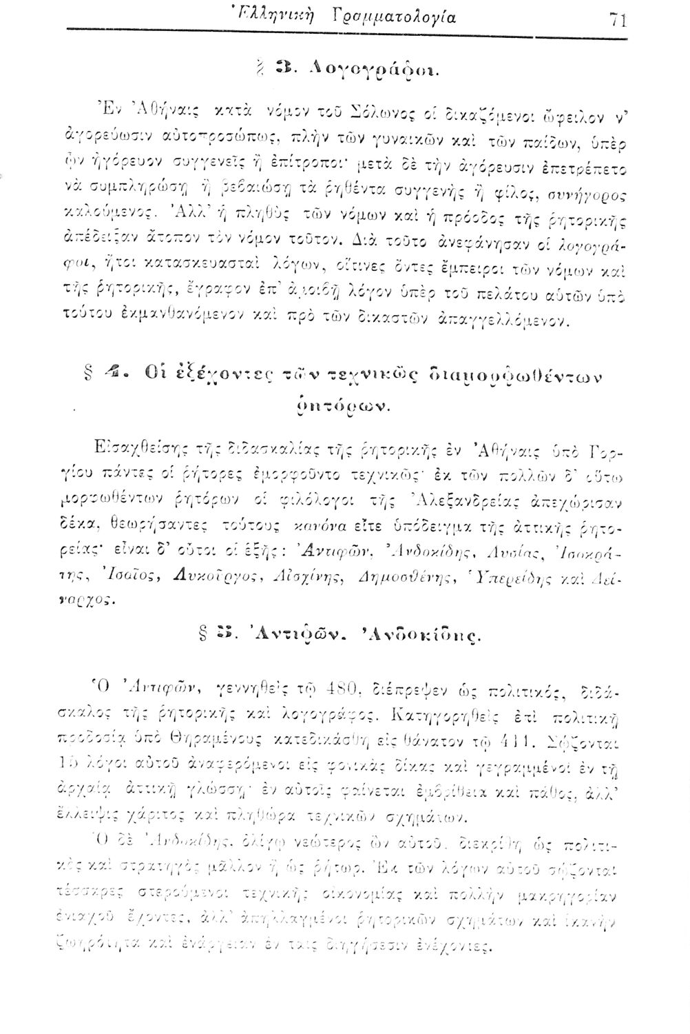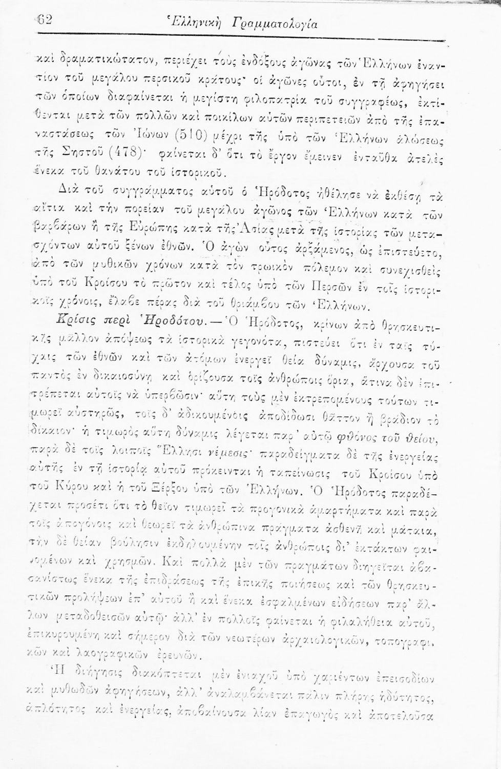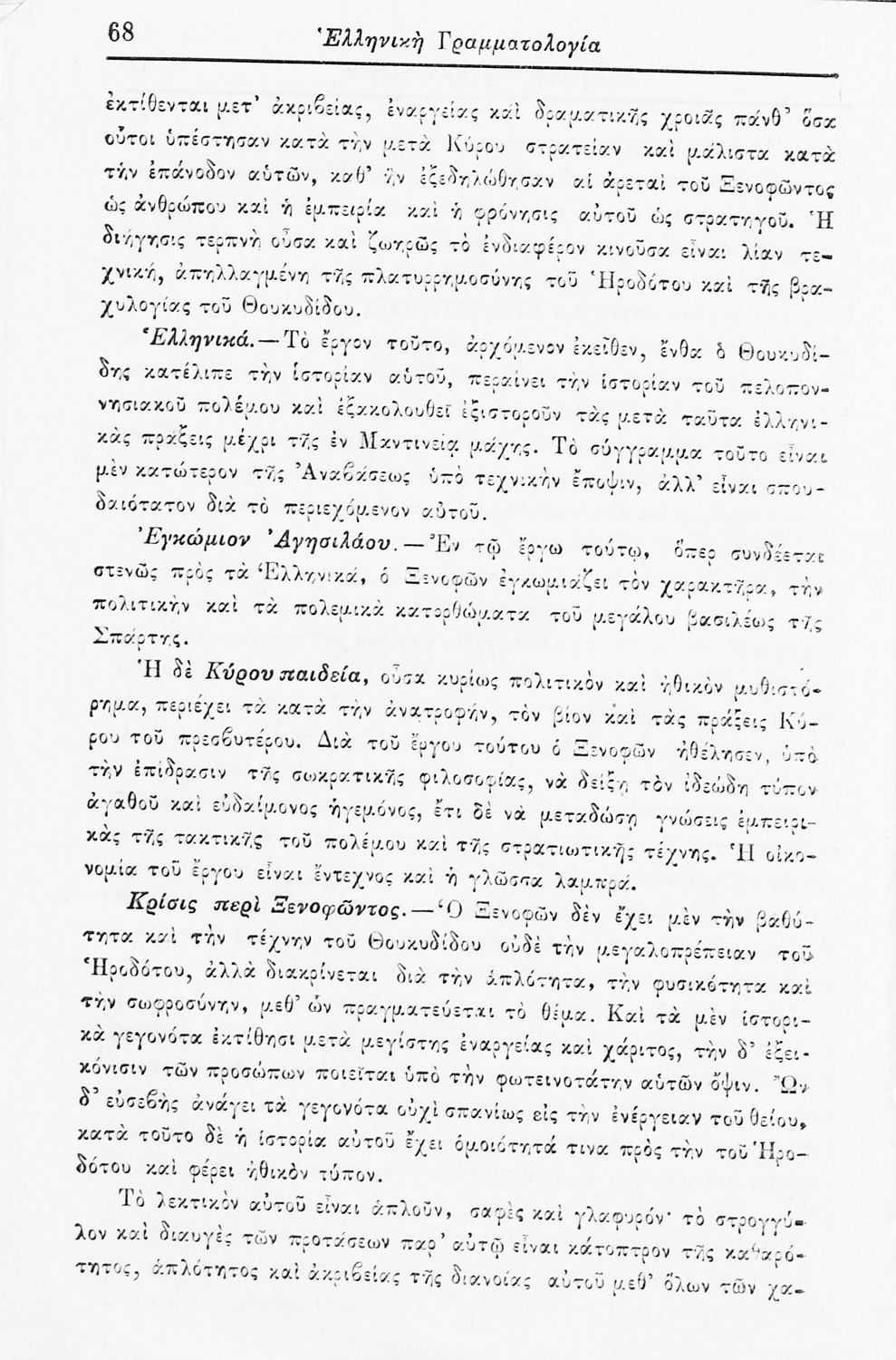 Βαθμίδα εκπαίδευσης: Δευτεροβάθμια Τάξη: Γυμνάσιο Μάθημα: Νέα Ελληνικά Γλώσσα: Καθαρεύουσα Παρουσίαση περιεχομένου: Σχολικό εγχειρίδιο Αρχαίων και Νέων Ελληνικών για το Γυμνάσιο που εξετάζει την εξέλιξη της ποίησης και του πεζού λόγου κατά την Αρχαϊκή, Κλασσική, Αλεξανδρινή και Ρωμαϊκή και Βυζαντινή περίοδο. |