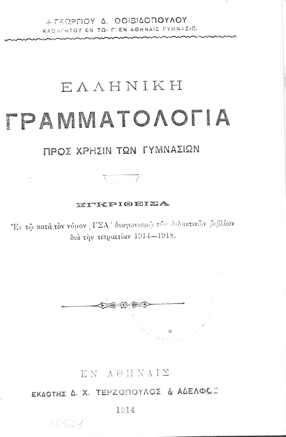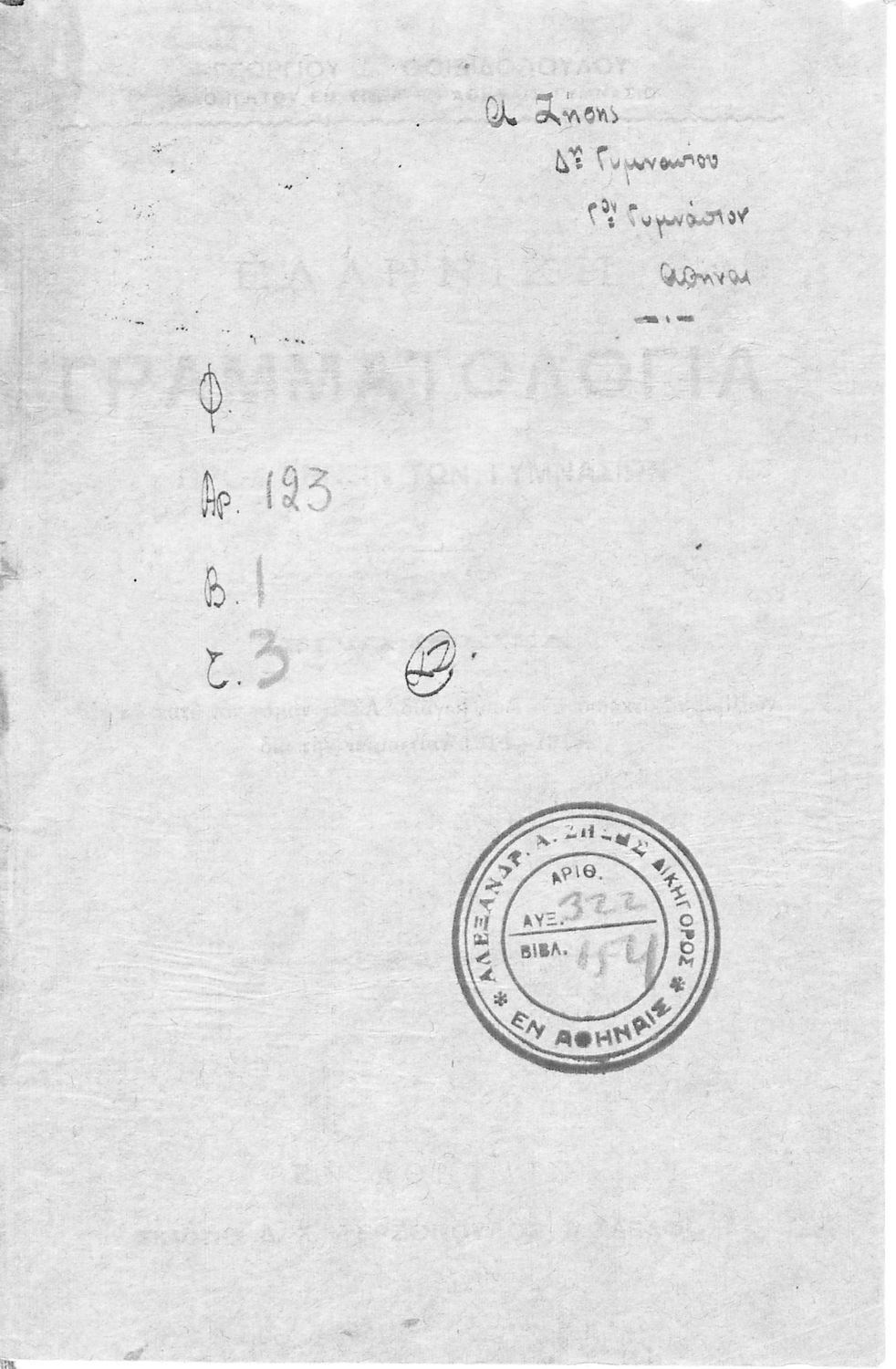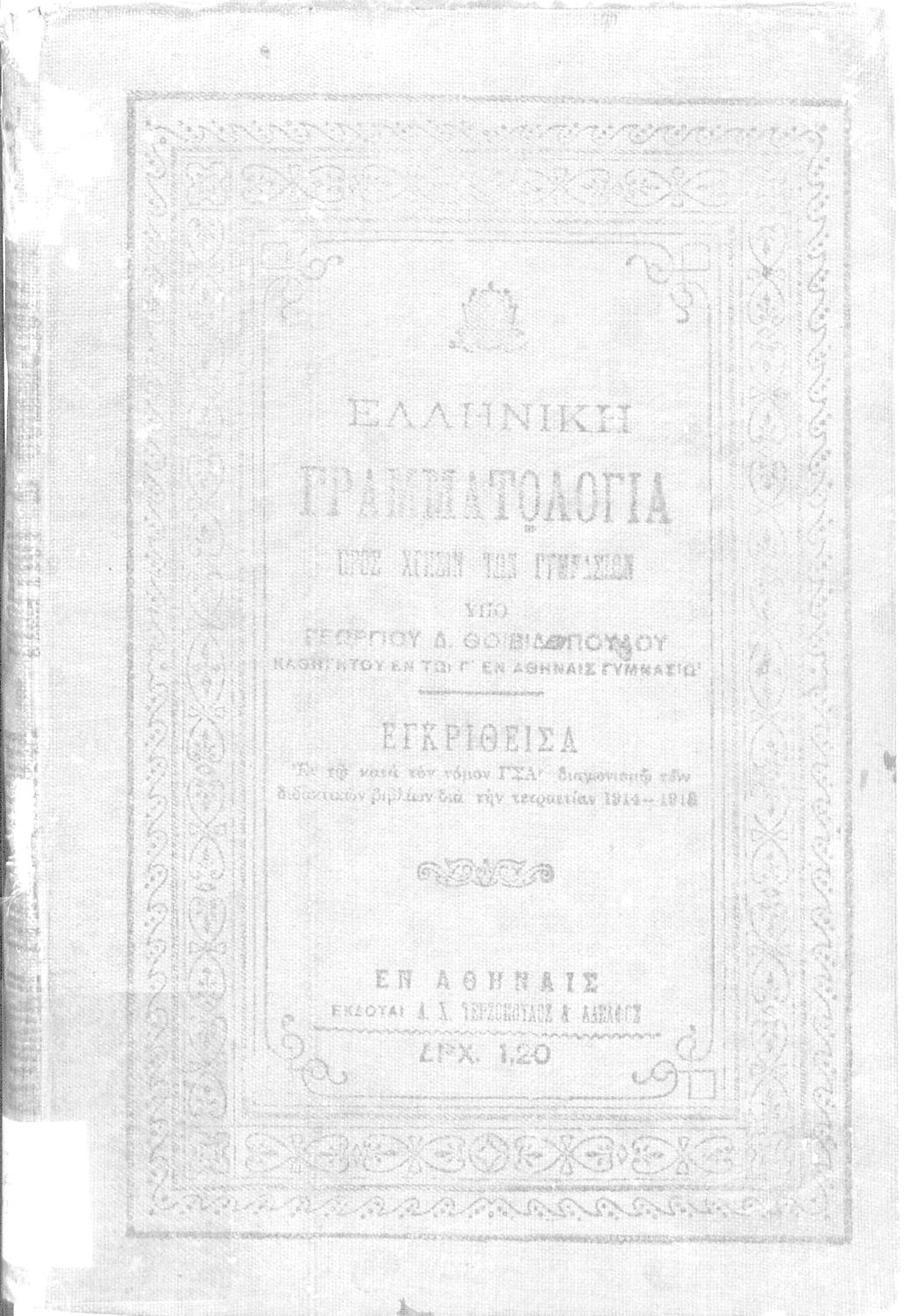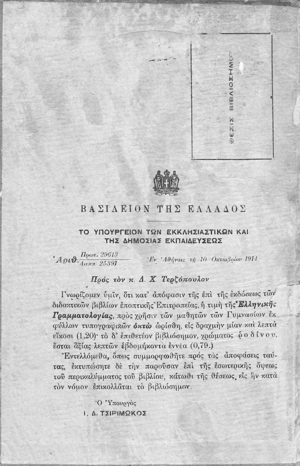 Εκδότης: Δ.Χ. Τερζόπουλος και Αδελφός Έτος έκδοσης: 1914 Τόπος έκδοσης: Αθήνα Έτος έγκρισης: 1914 |