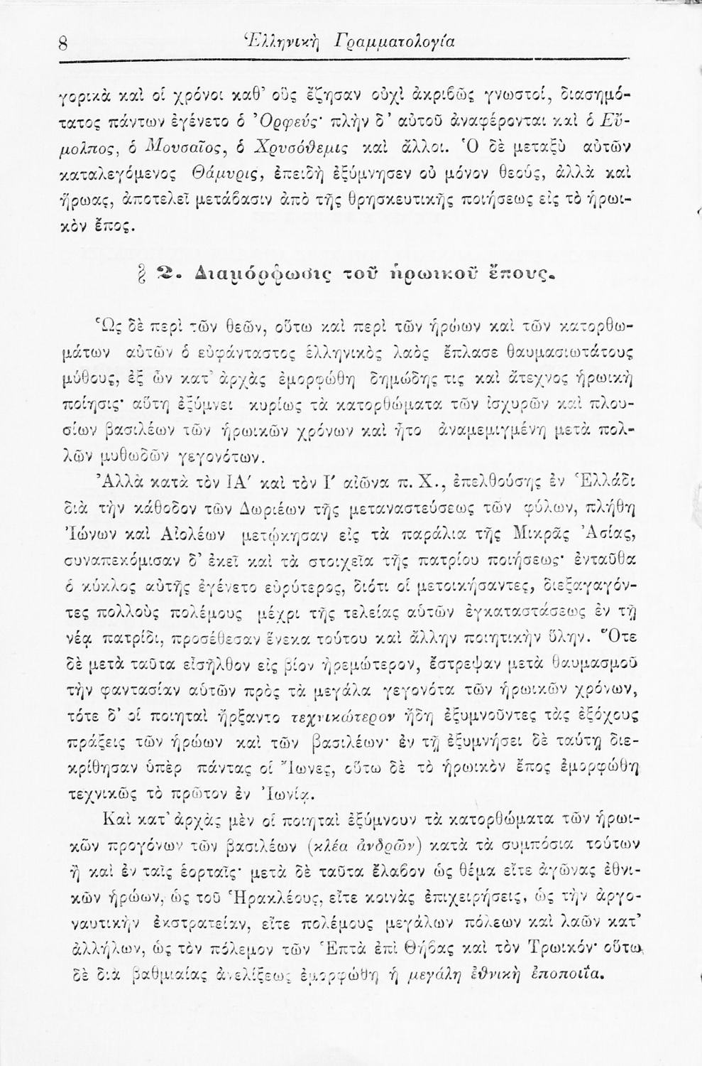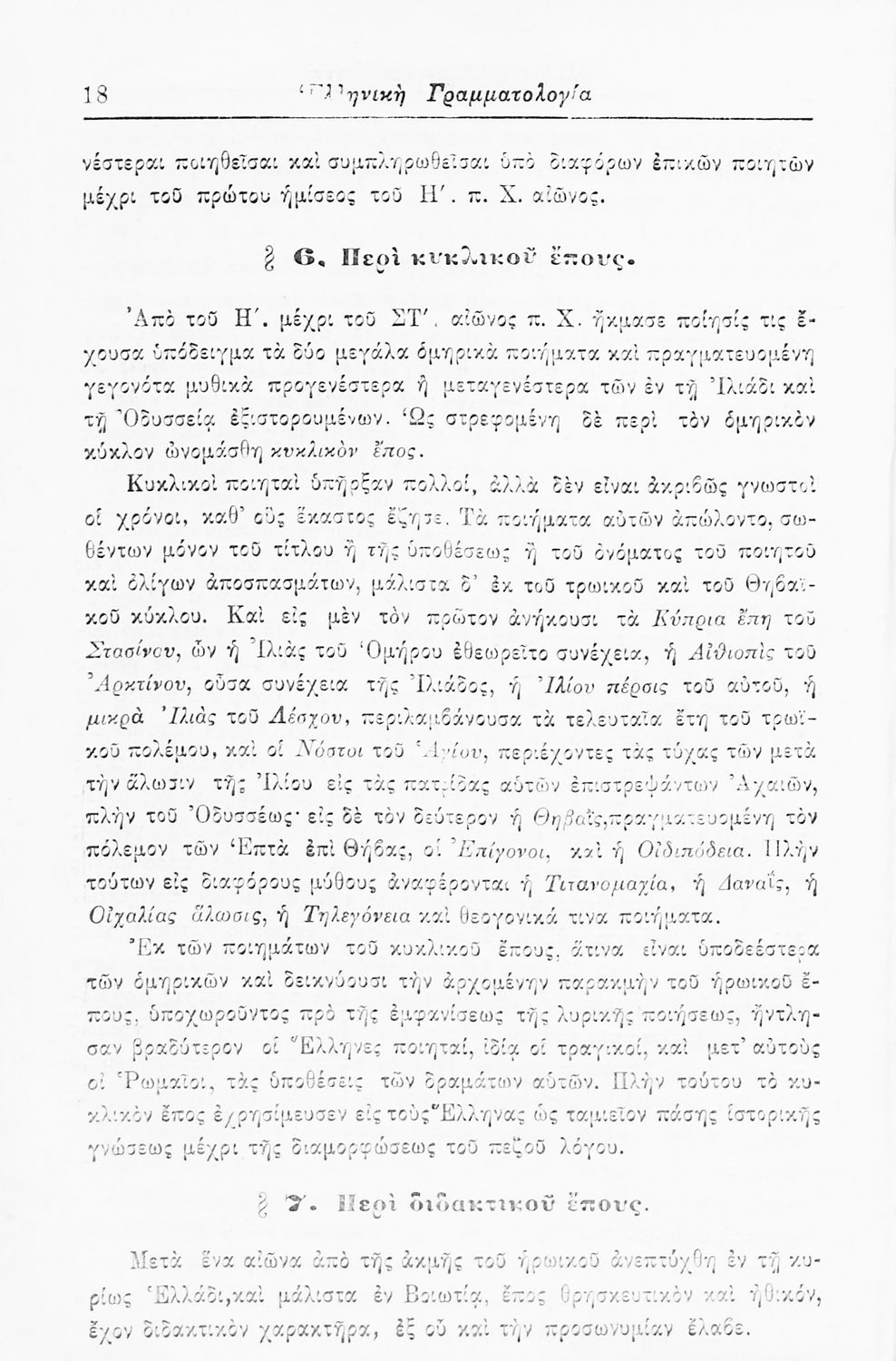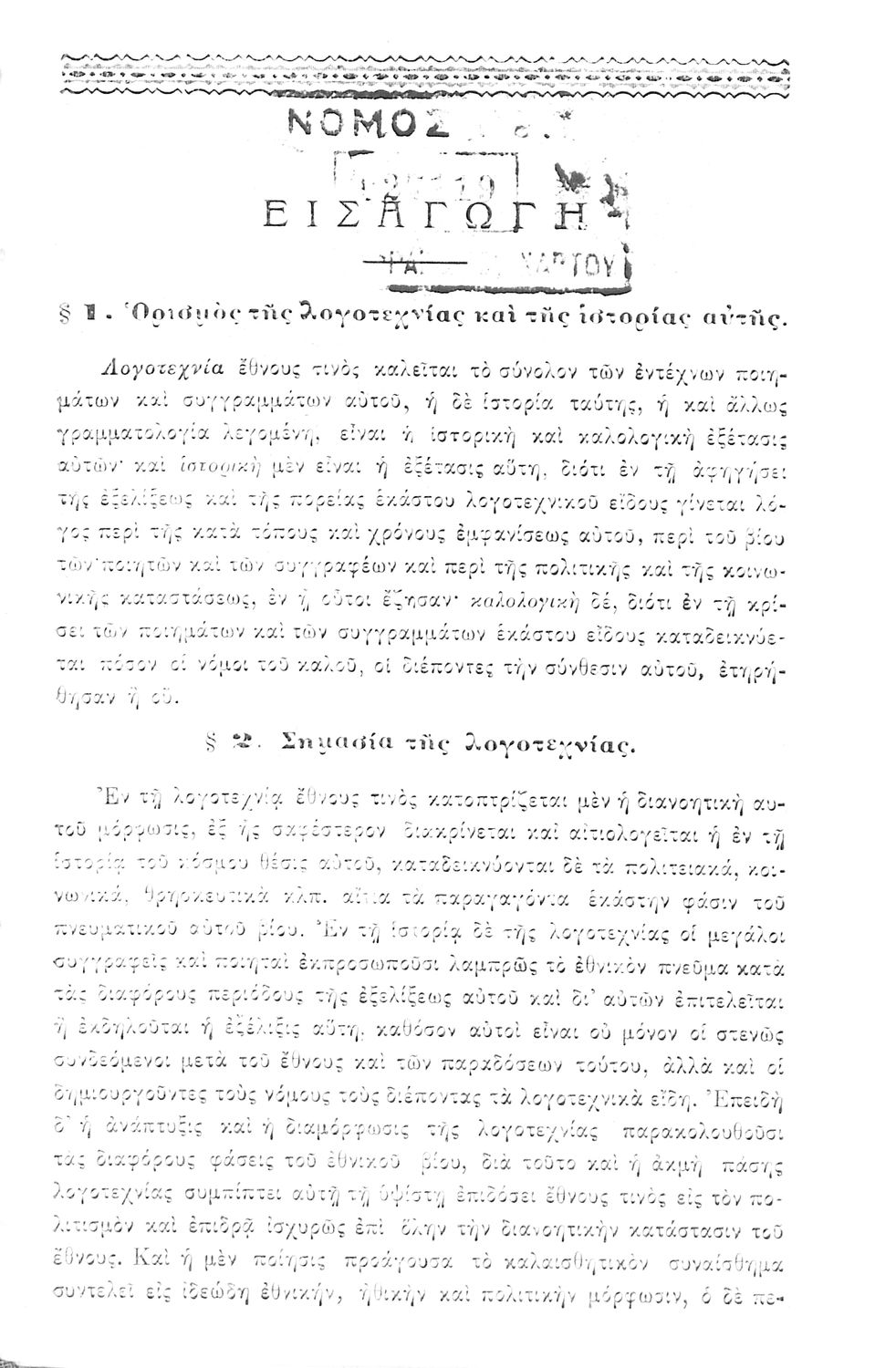 Βαθμίδα εκπαίδευσης: Δευτεροβάθμια Τάξη: Γυμνάσιο Μάθημα: Νέα Ελληνικά Γλώσσα: Καθαρεύουσα Παρουσίαση περιεχομένου: Σχολικό εγχειρίδιο Αρχαίων και Νέων Ελληνικών για το Γυμνάσιο που εξετάζει την εξέλιξη της ποίησης και του πεζού λόγου κατά την Αρχαϊκή, Κλασσική, Αλεξανδρινή και Ρωμαϊκή και Βυζαντινή περίοδο. |