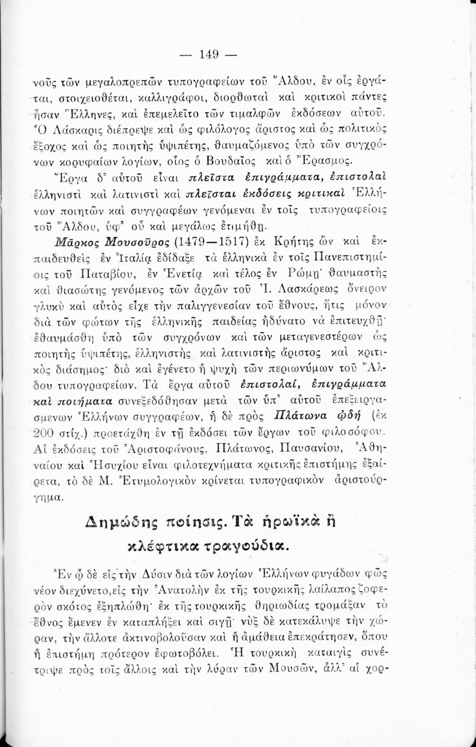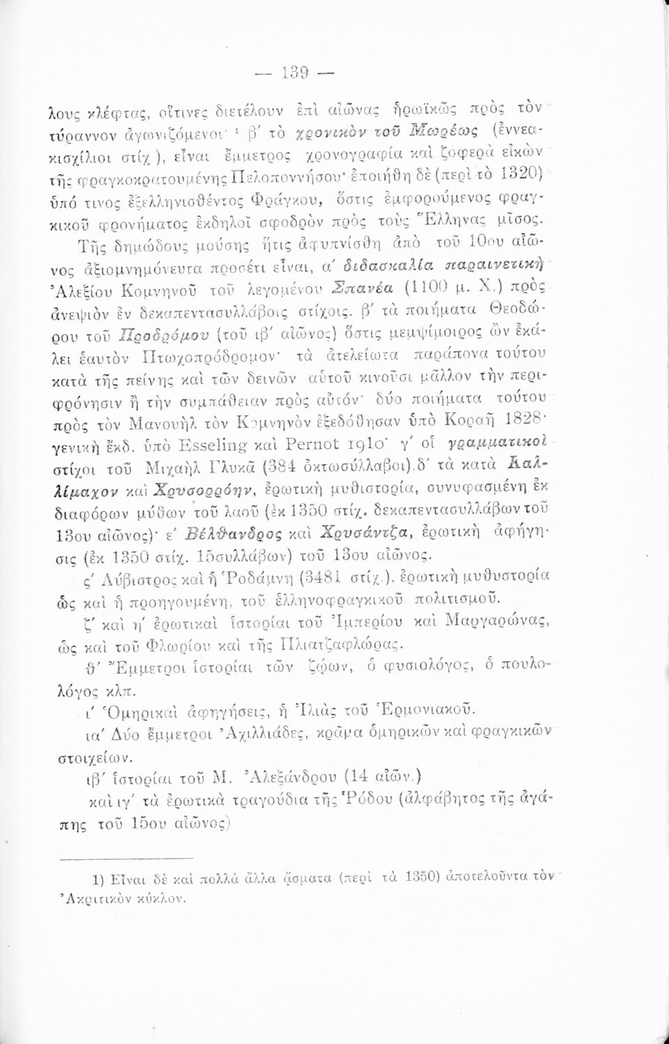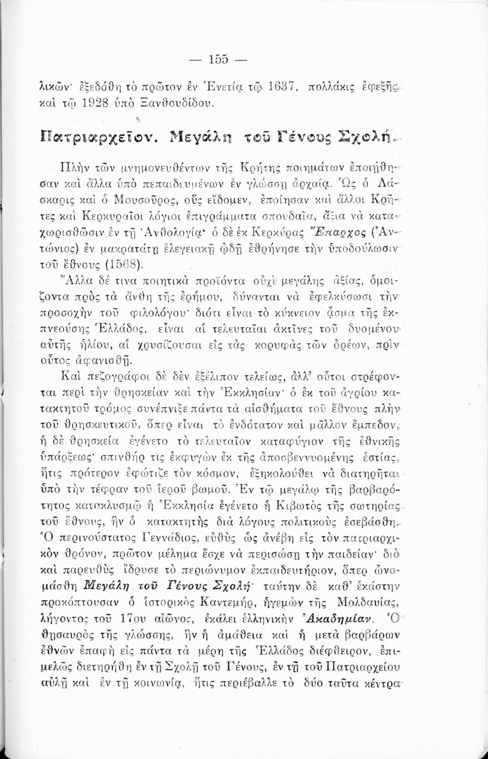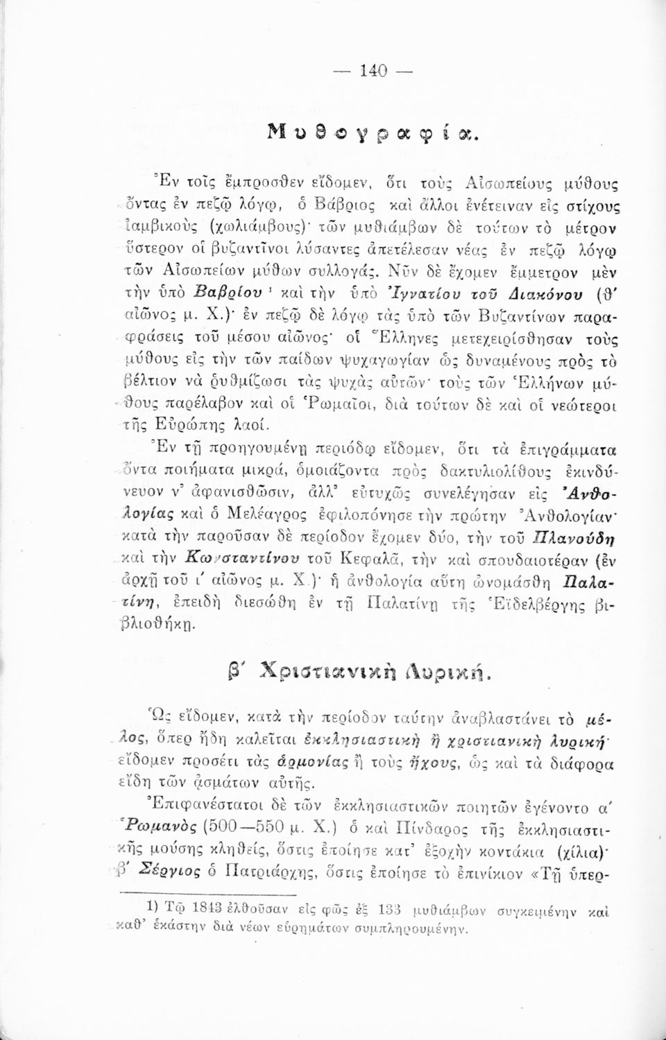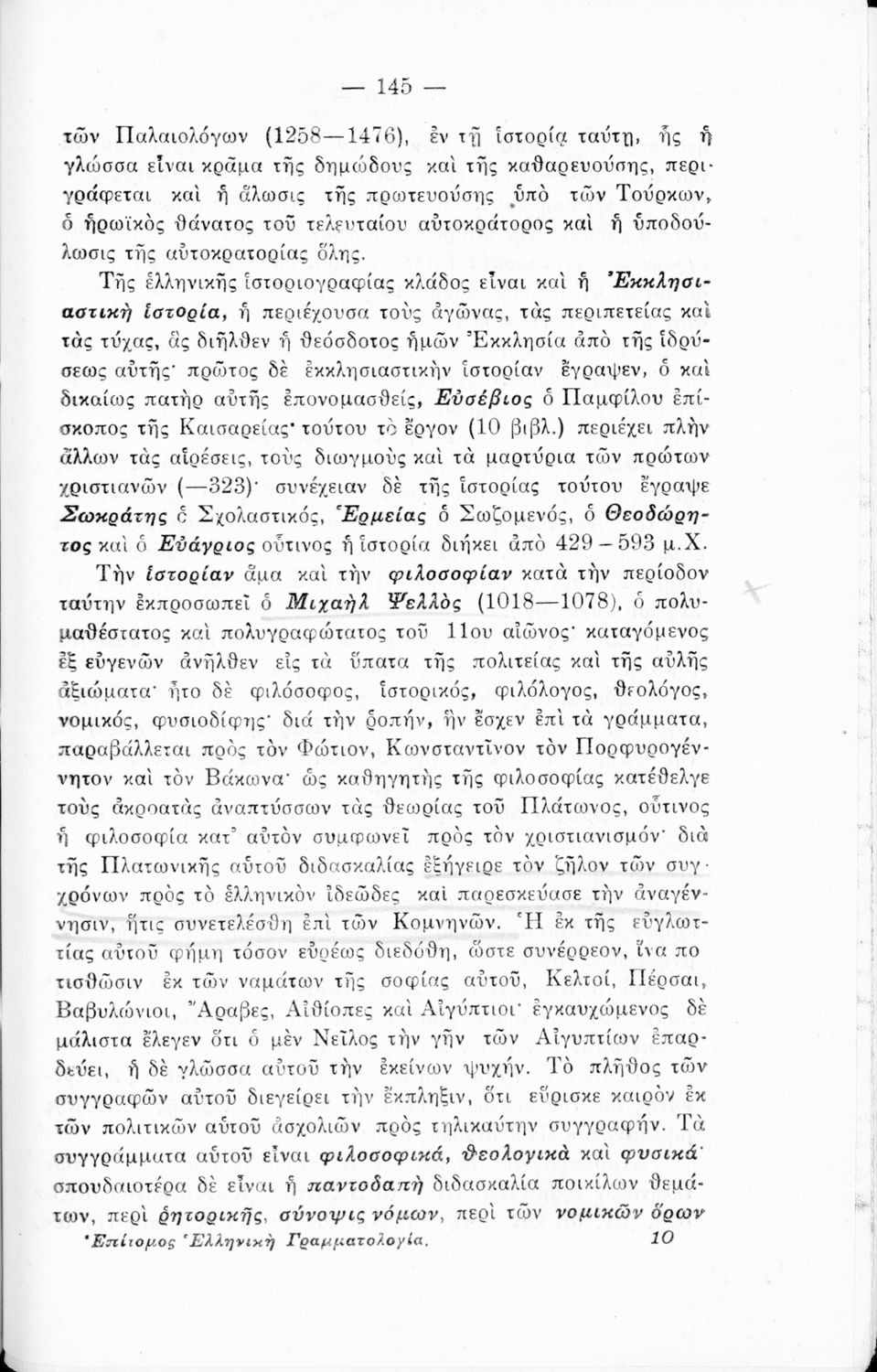 Παρουσίαση περιεχομένου: Σχολικό εγχειρίδιο Αρχαίων και Νέων Ελληνικών για τις Γ΄, Δ΄, Ε΄, ΣΤ΄ Γυμνασίου που παρουσιάζει τα είδη λογοτεχνίας και την εξέλιξη της ελληνικής γλώσσας από την εποχή του Όμηρου μέχρι την Ελληνική Επανάσταση. Περιέχει και αναφορά στα δημοτικά τραγούδια και σύντομα βιογραφικά σημειώματα επιφανών λογοτεχνών. Ο συγγραφέας ήταν Καθηγητής Ελληνικών Γραμμάτων στο Εθνικό Πανεπιστήμιο και Γυμνασιάρχης στο Αρσάκειο.